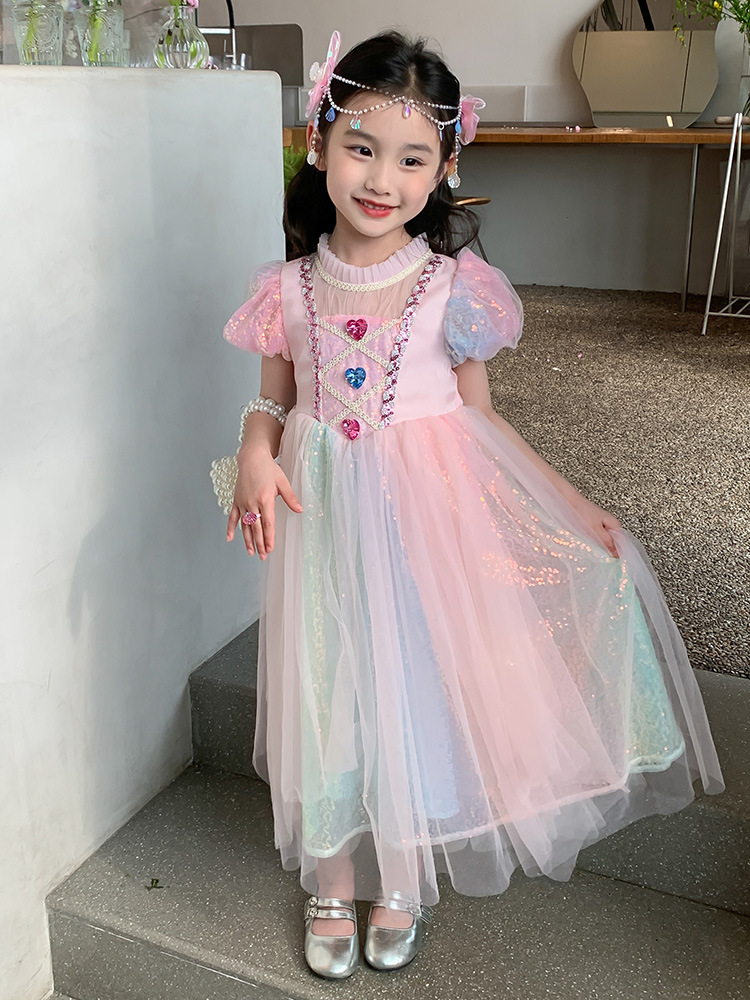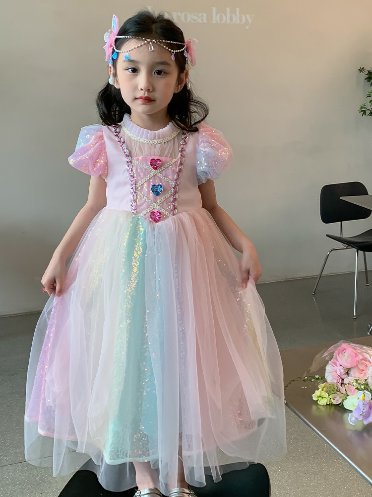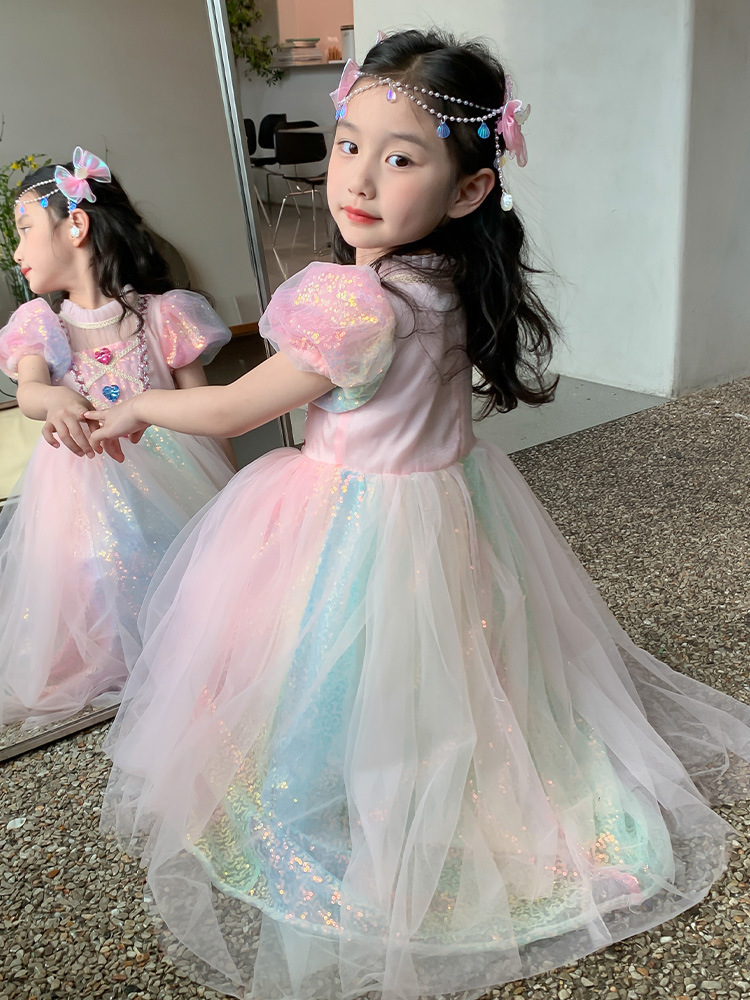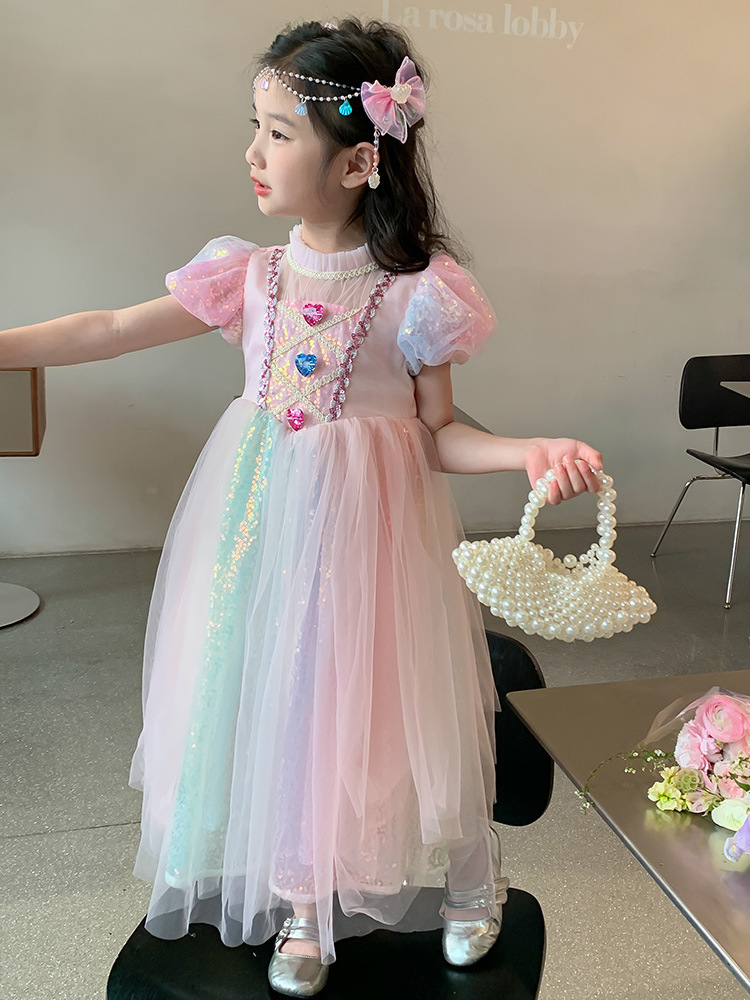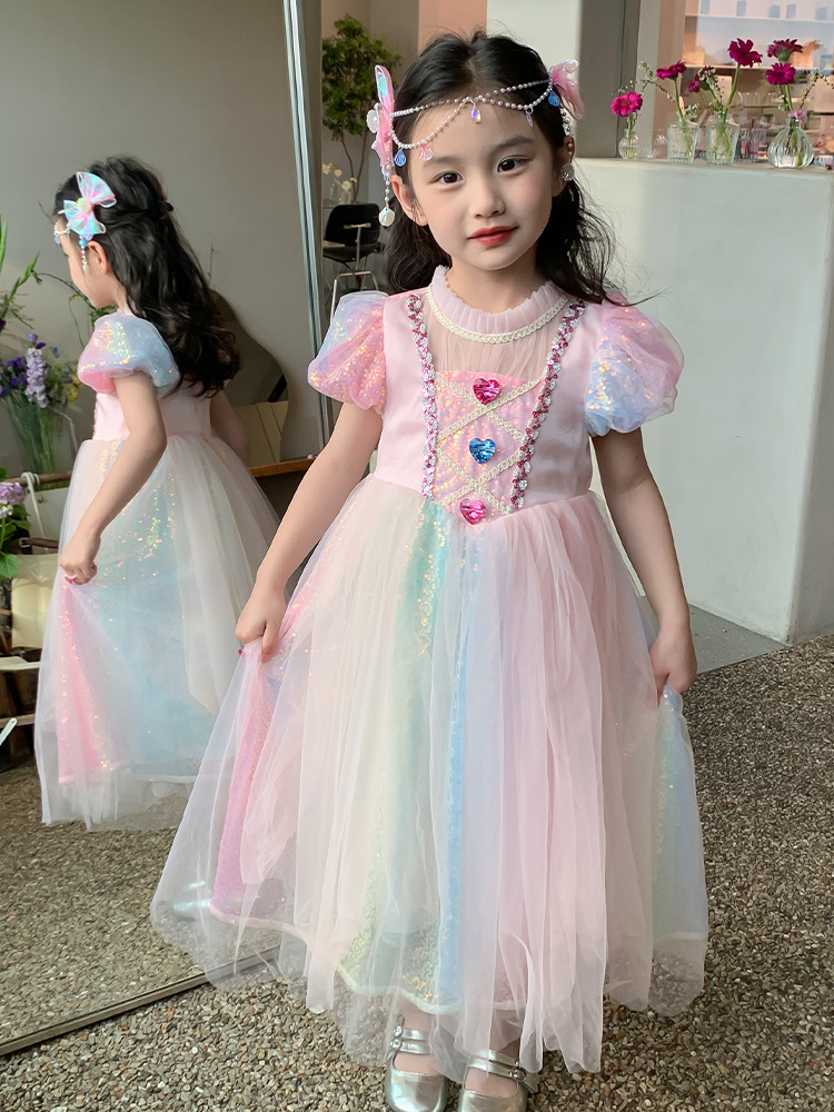 여자 케이크 스커트 2024 새로운 짧은 소매 공주 푹신한 치마 생일 선물 외국 스타일 무지개 원피스스토어 가기