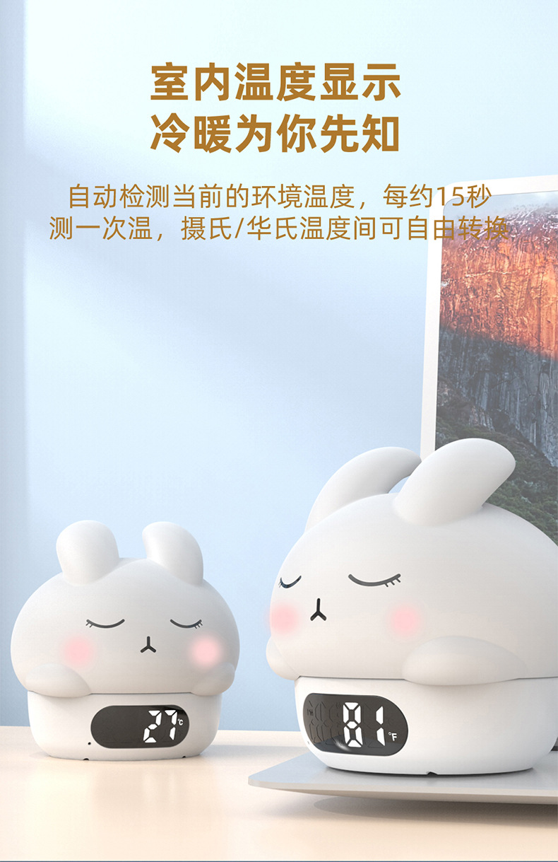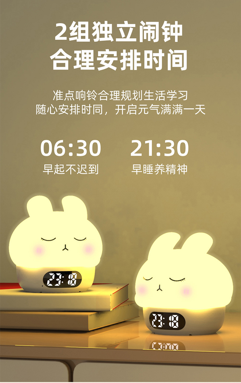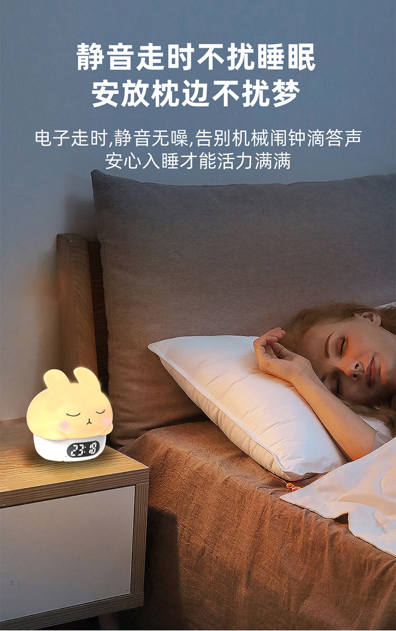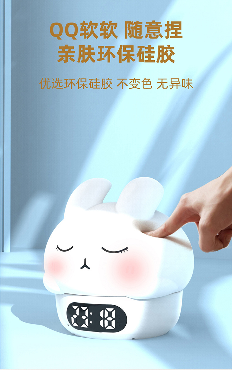 공장 직접 판매 토끼 분위기 알람 시계 야간 조명 어린이 수면 눈 보호 유도 수유 라이트 알람 시계 라이트스토어 가기