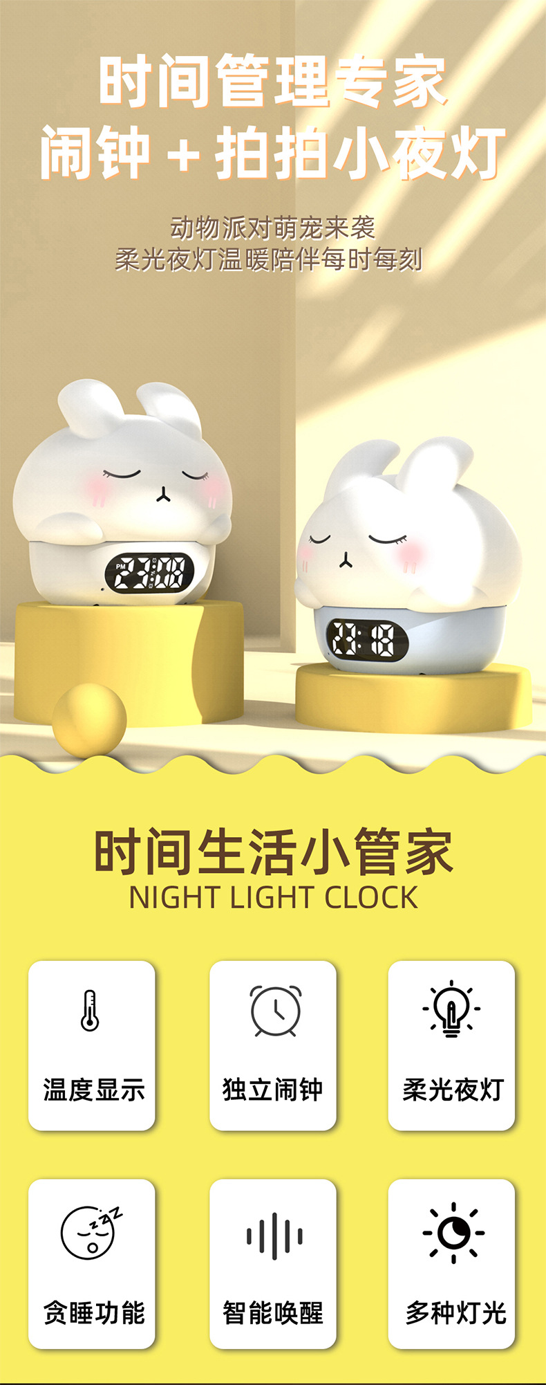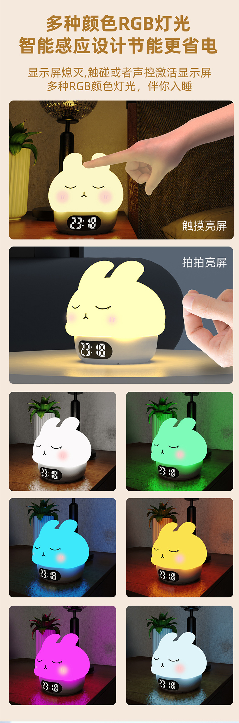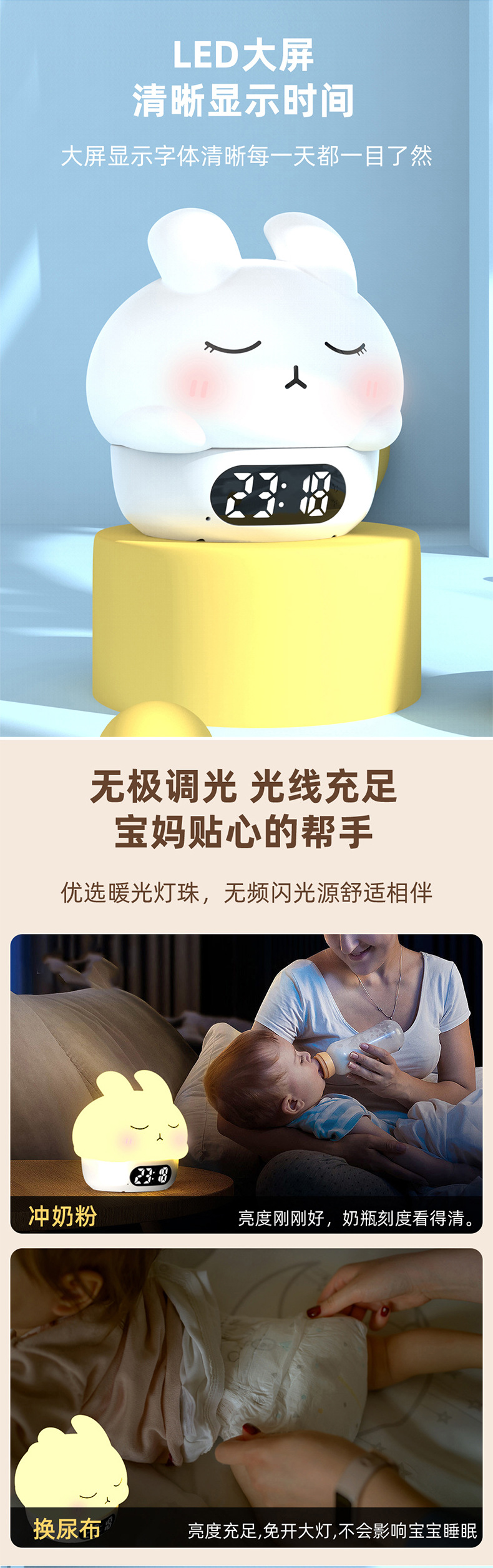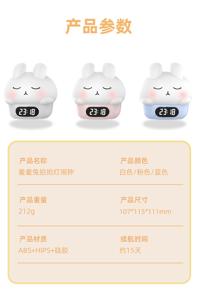 공장 직접 판매 토끼 분위기 알람 시계 야간 조명 어린이 수면 눈 보호 유도 수유 라이트 알람 시계 라이트스토어 가기