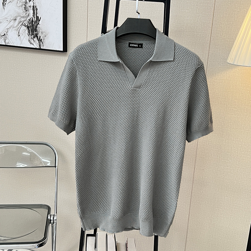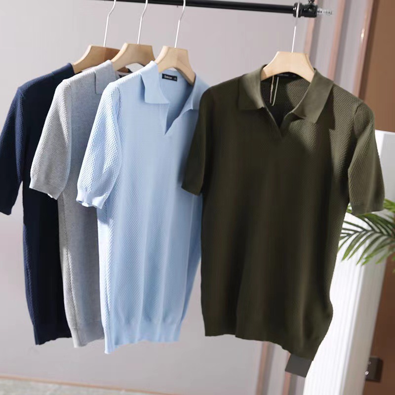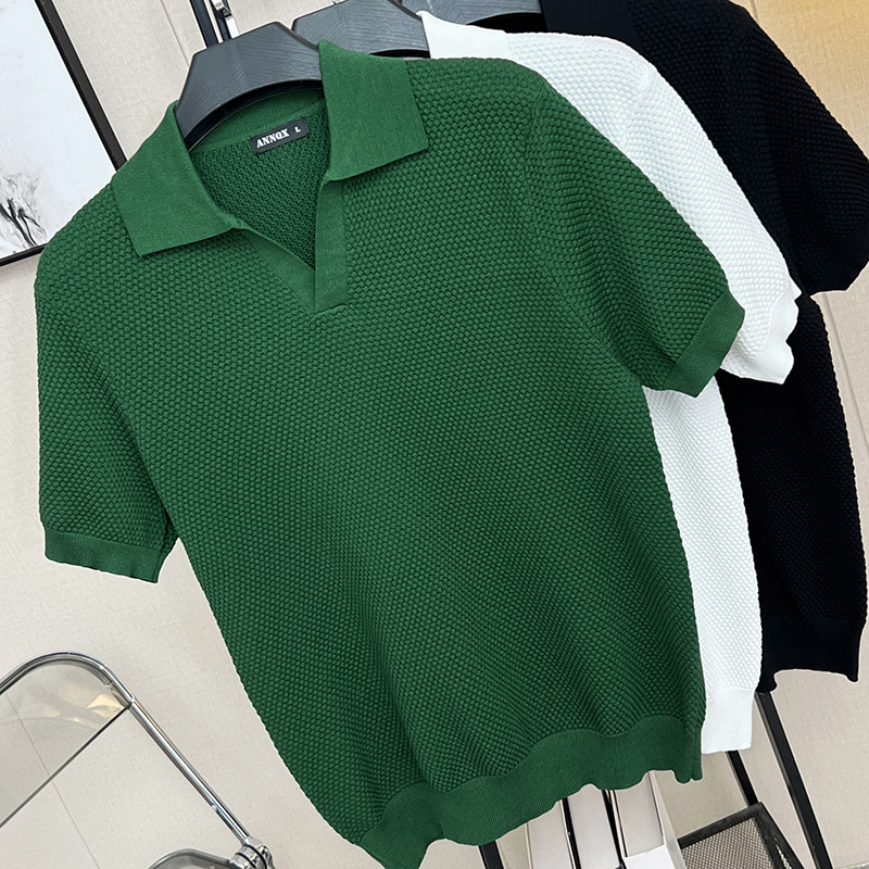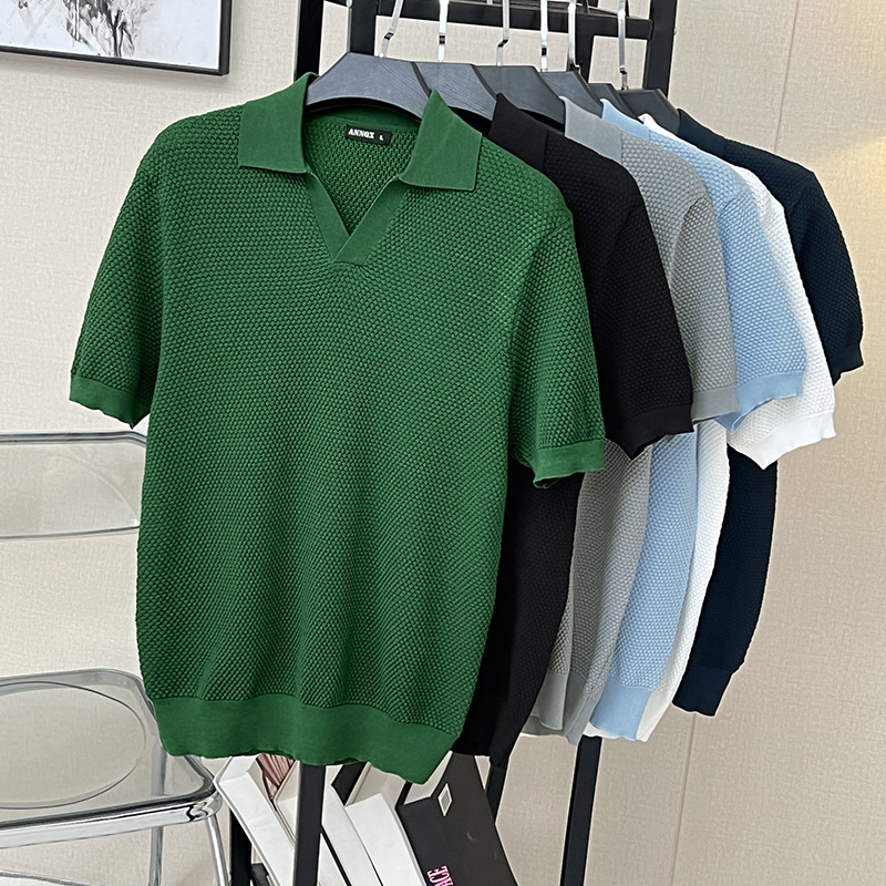 남자 봄 여름 가을 사업 폴로 니트 풀오버 자카드 파인애플 바늘 슬림 탑