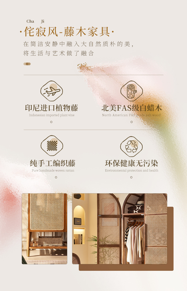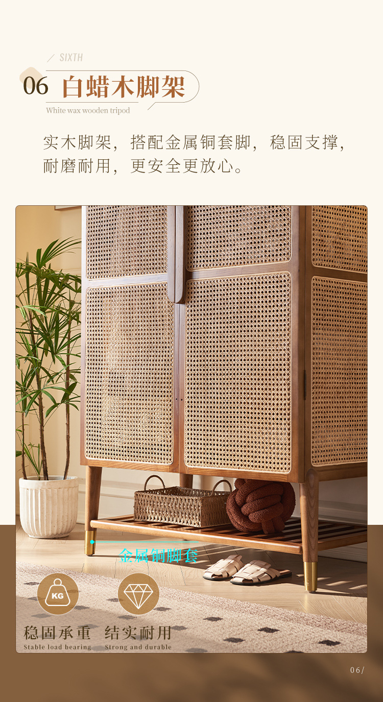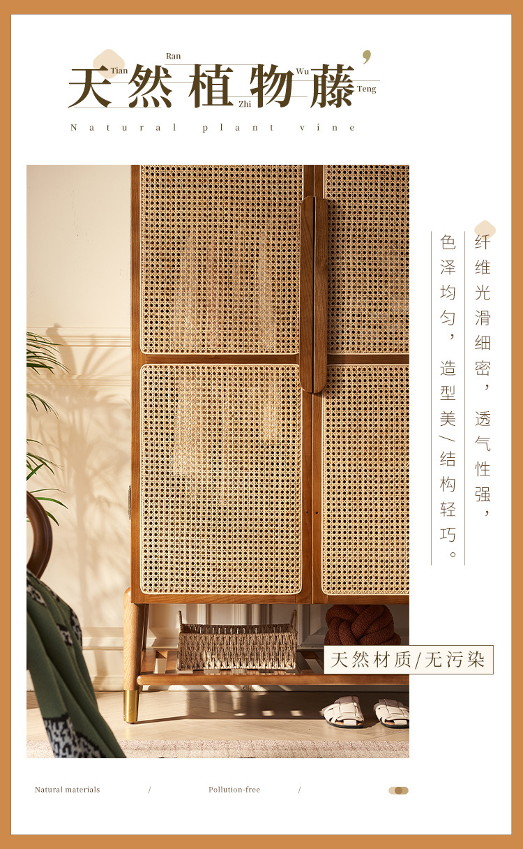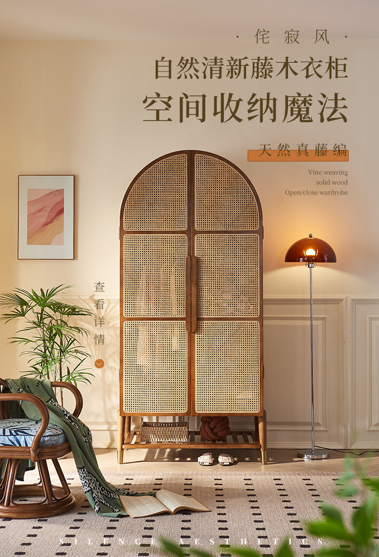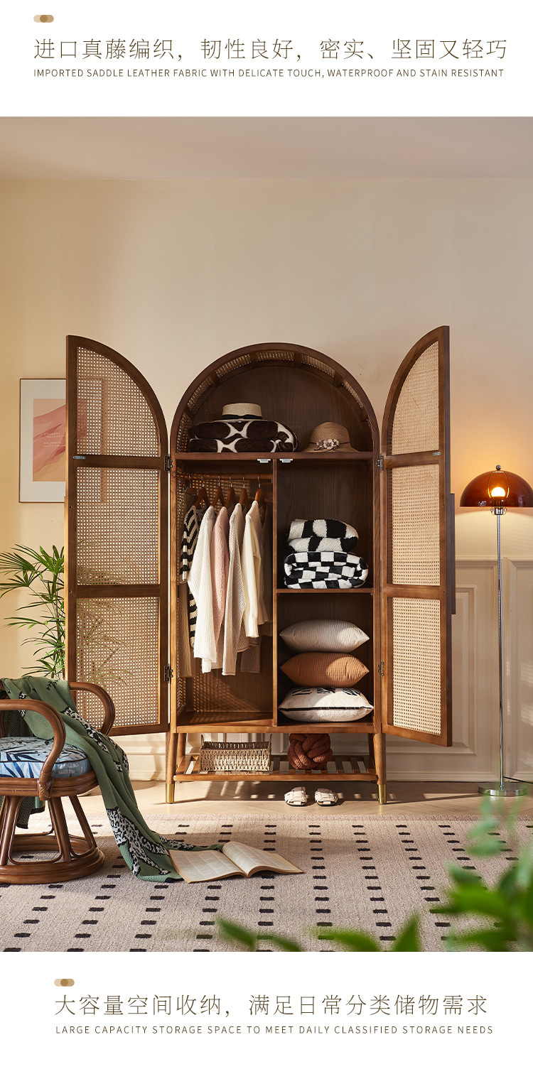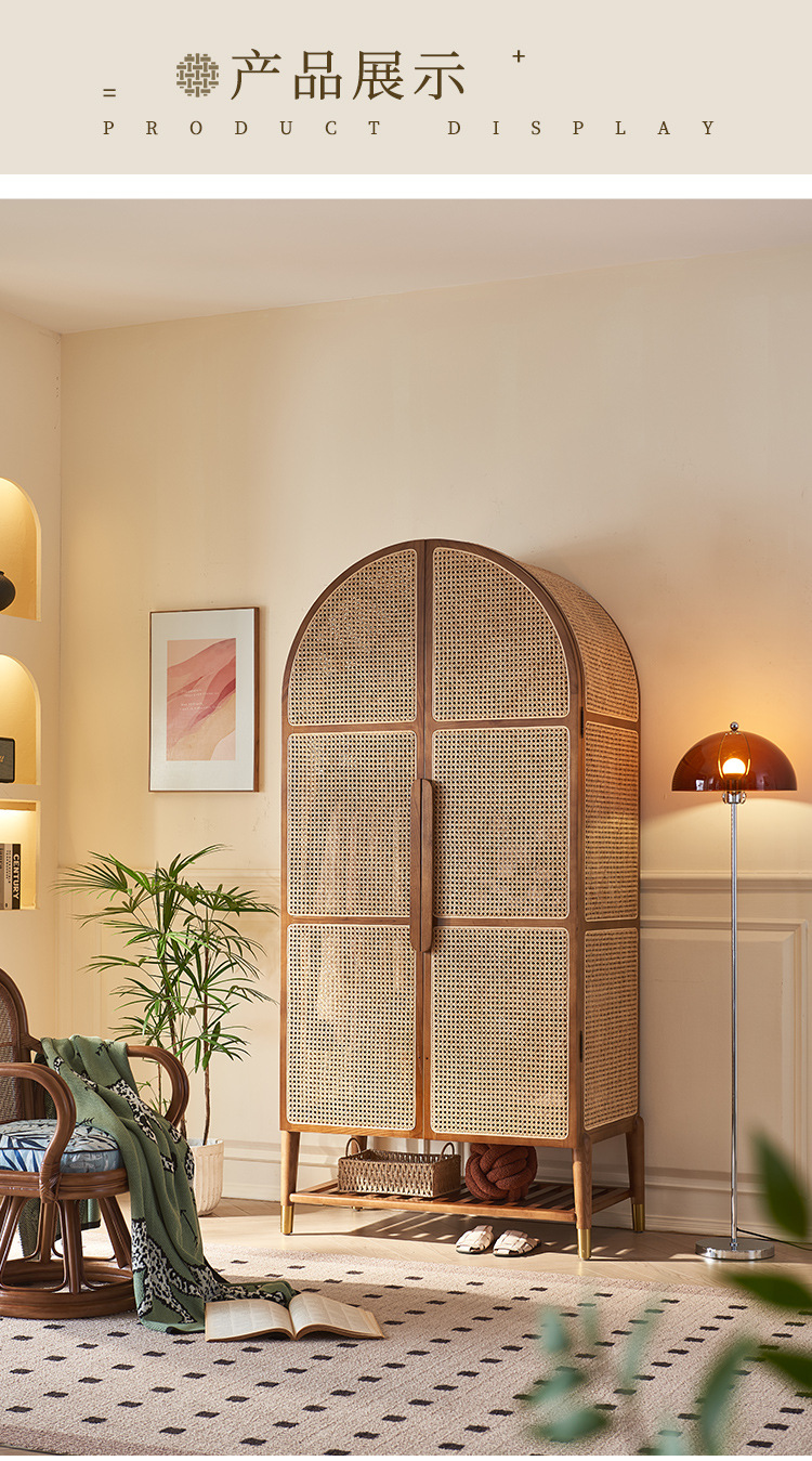 조용한 스타일 등나무 예술적 창조적 인 옷장 현대 간단한 단단한 나무 캐비닛 홈스테이 침실 다기능 옷장