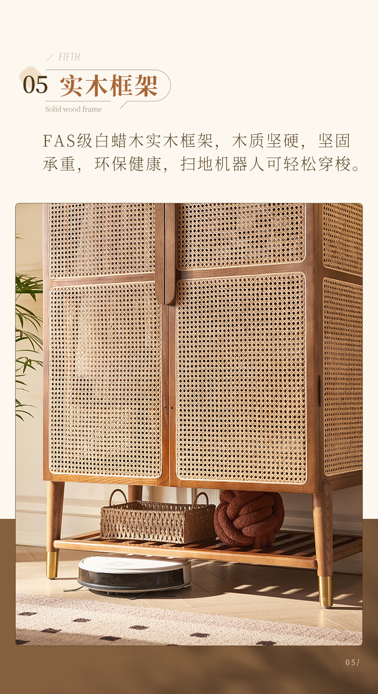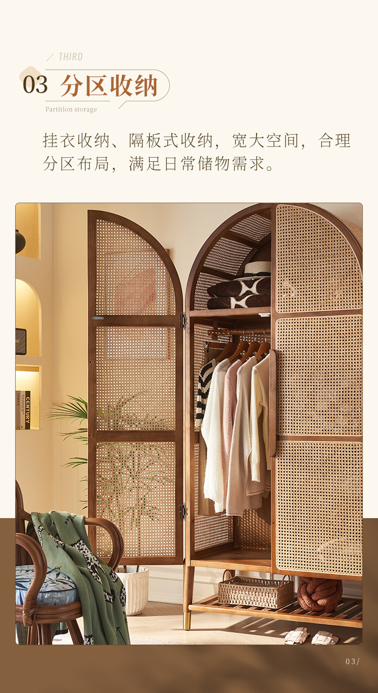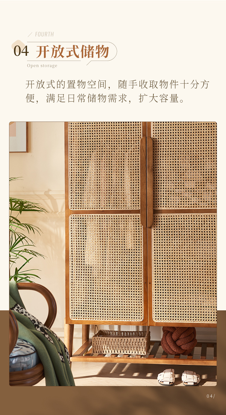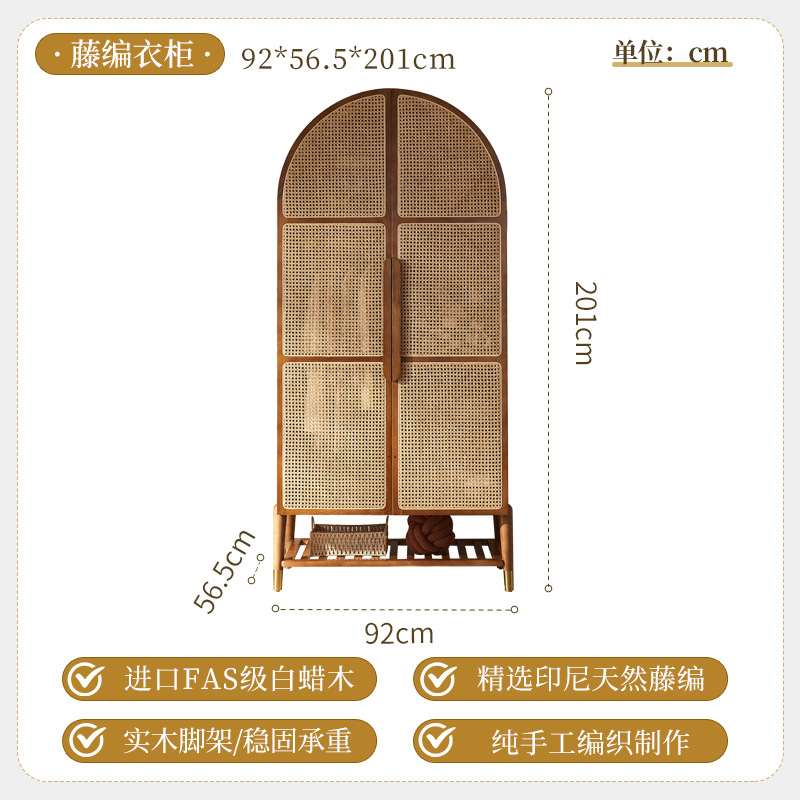 조용한 스타일 등나무 예술적 창조적 인 옷장 현대 간단한 단단한 나무 캐비닛 홈스테이 침실 다기능 옷장스토어 가기