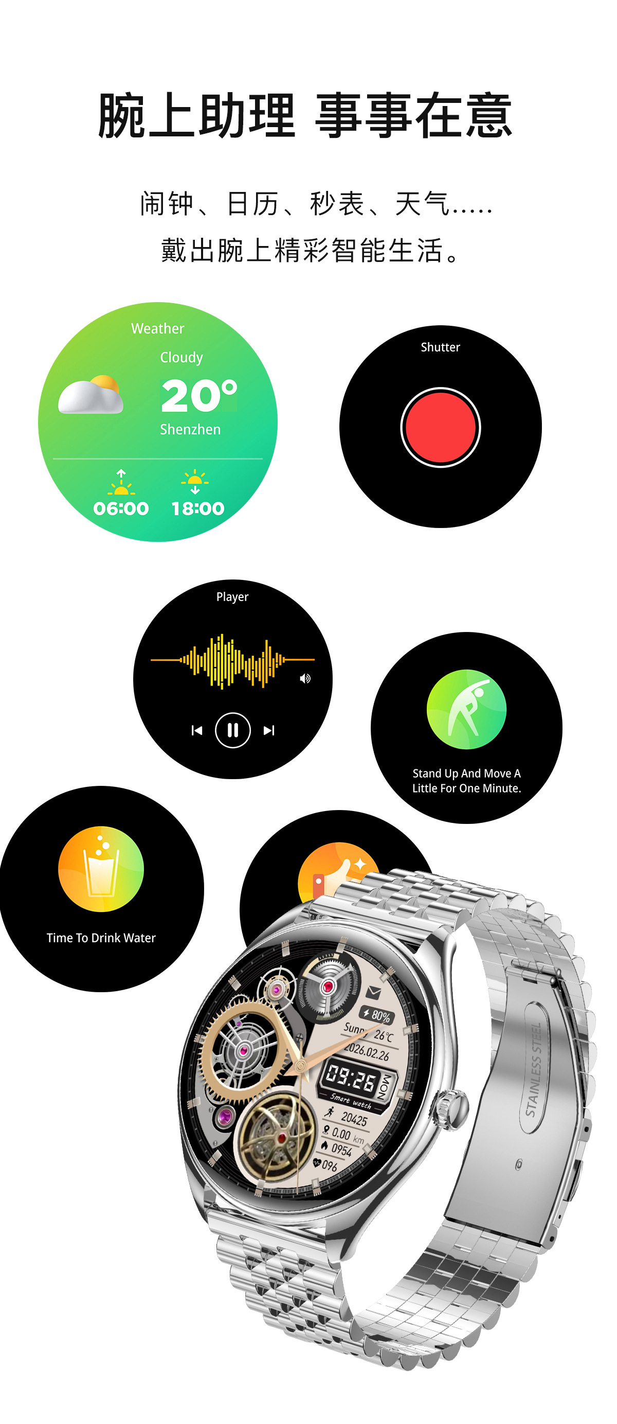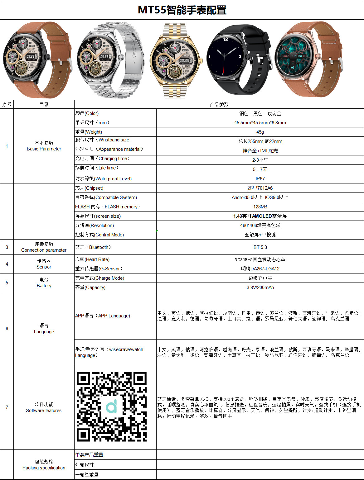 新款MT55智能手表心率血氧蓝牙通话音乐语音助手多运动模式计步表