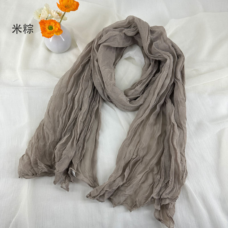 단색 작은면과 리넨 스카프 예술적 올매치 여성 봄과 가을 부드러운 통기성 실크 스카프 가을과 겨울에 따뜻한 스카프