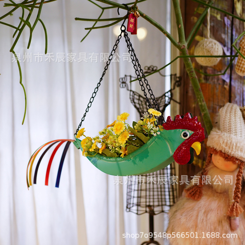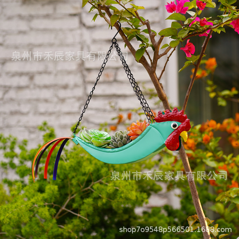 국경 아마존 새로운 금속 수탉 꽃 냄비 앵무새 꽃 냄비 정원 장식 꽃 냄비 금속 장식