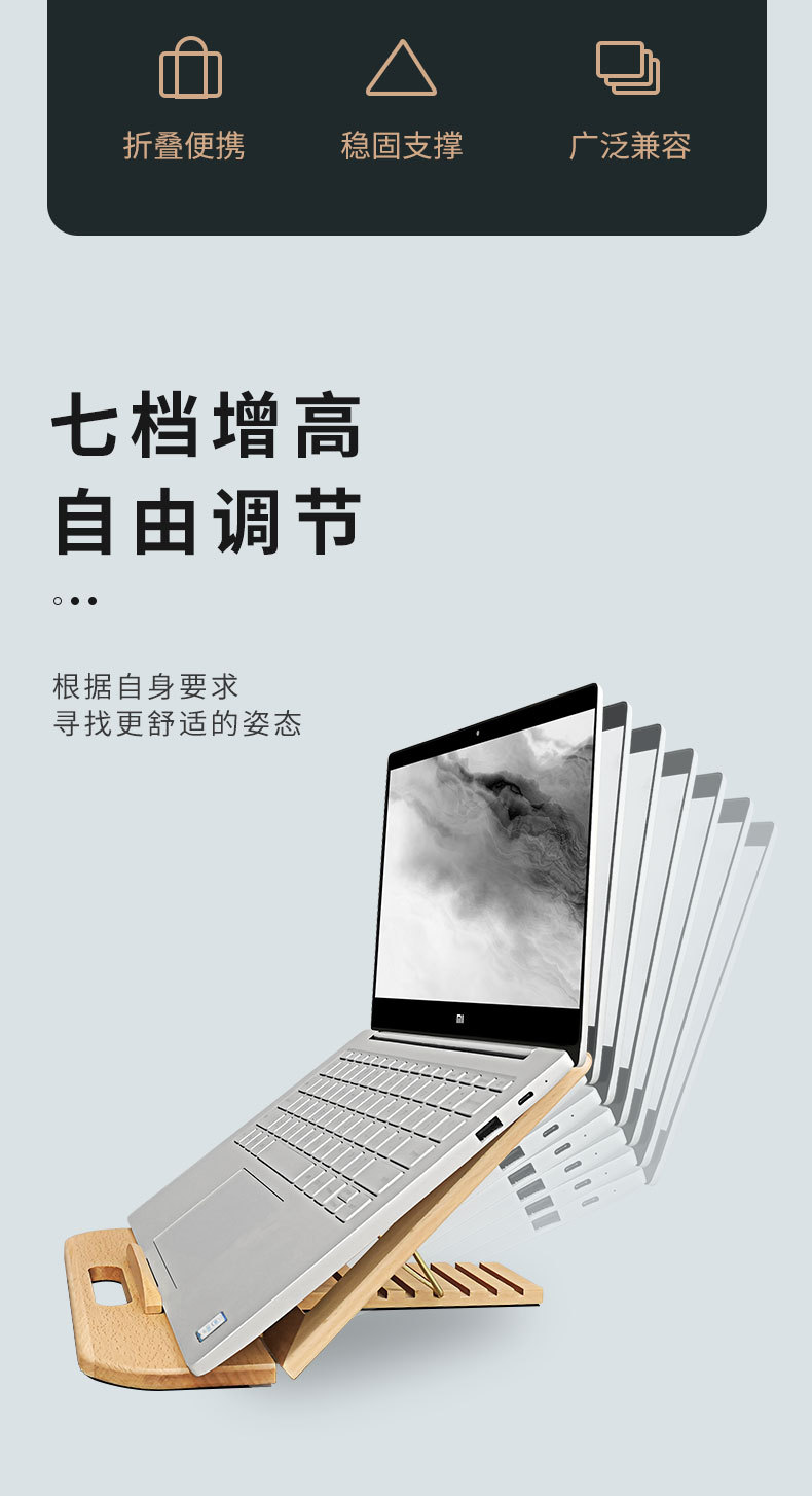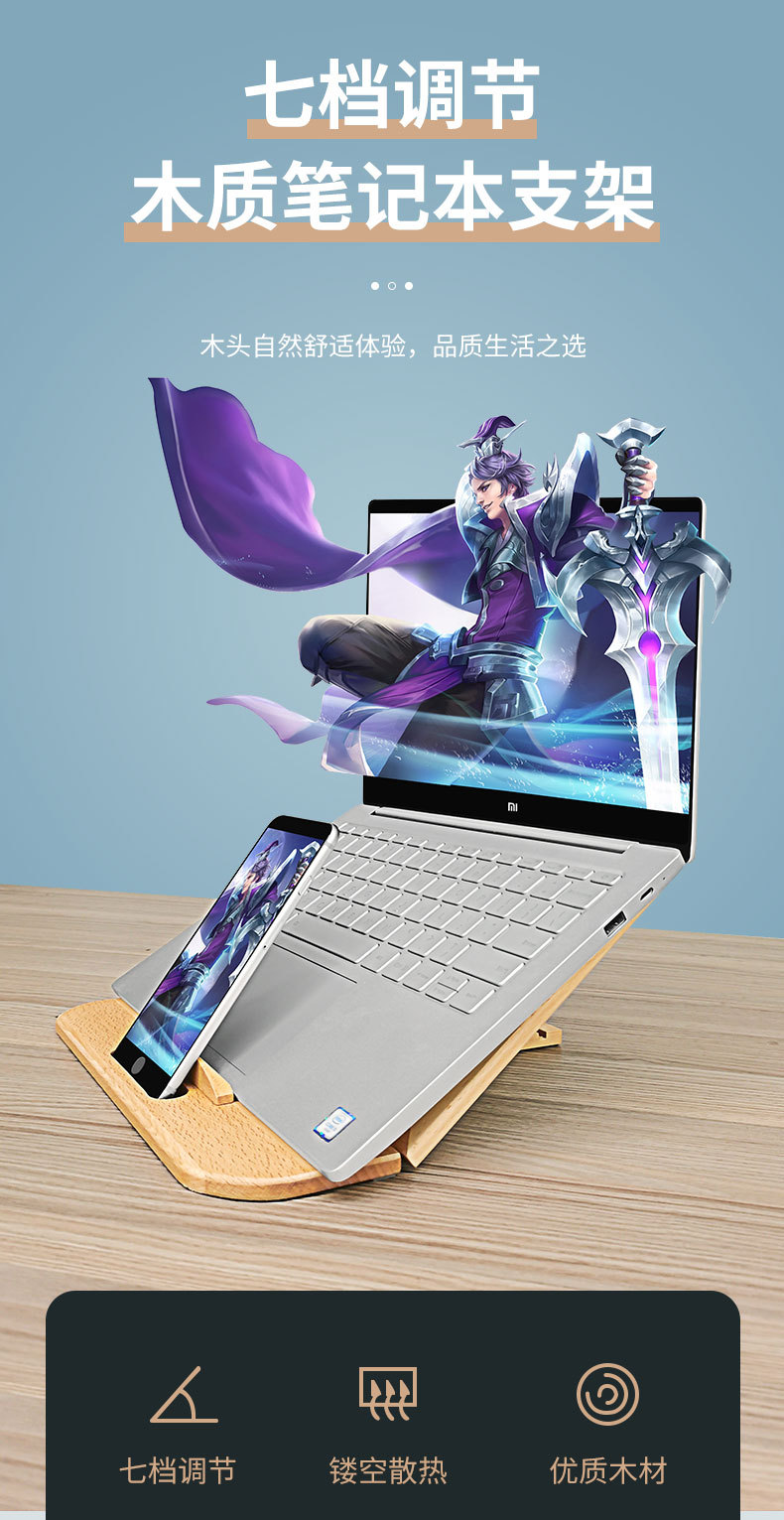 단단한 나무 노트북 컴퓨터 높은 방열 브래킷 데스크탑 마무리 멀티 레벨 조절 각도 조절 가능스토어 가기