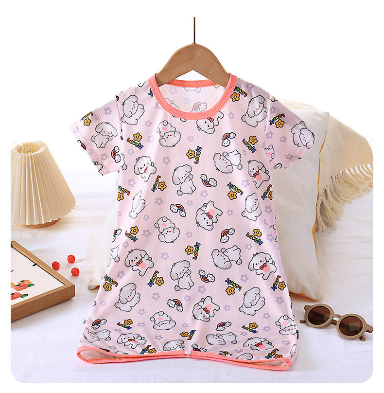 어린이 잠옷 소녀 아이스 실크 한 몸 잠옷 아기 여름 가정 옷 유아 침낭 아동복 도매