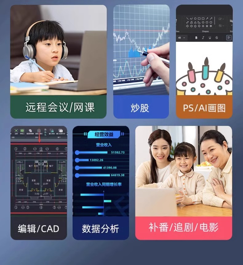 • 1T 솔리드 스테이트 [업그레이드 버전/스크린 터치 스크린]에는 마우스 + 컴퓨터 스탠드 + 컴퓨터 가방이 함께 제공됩니다.