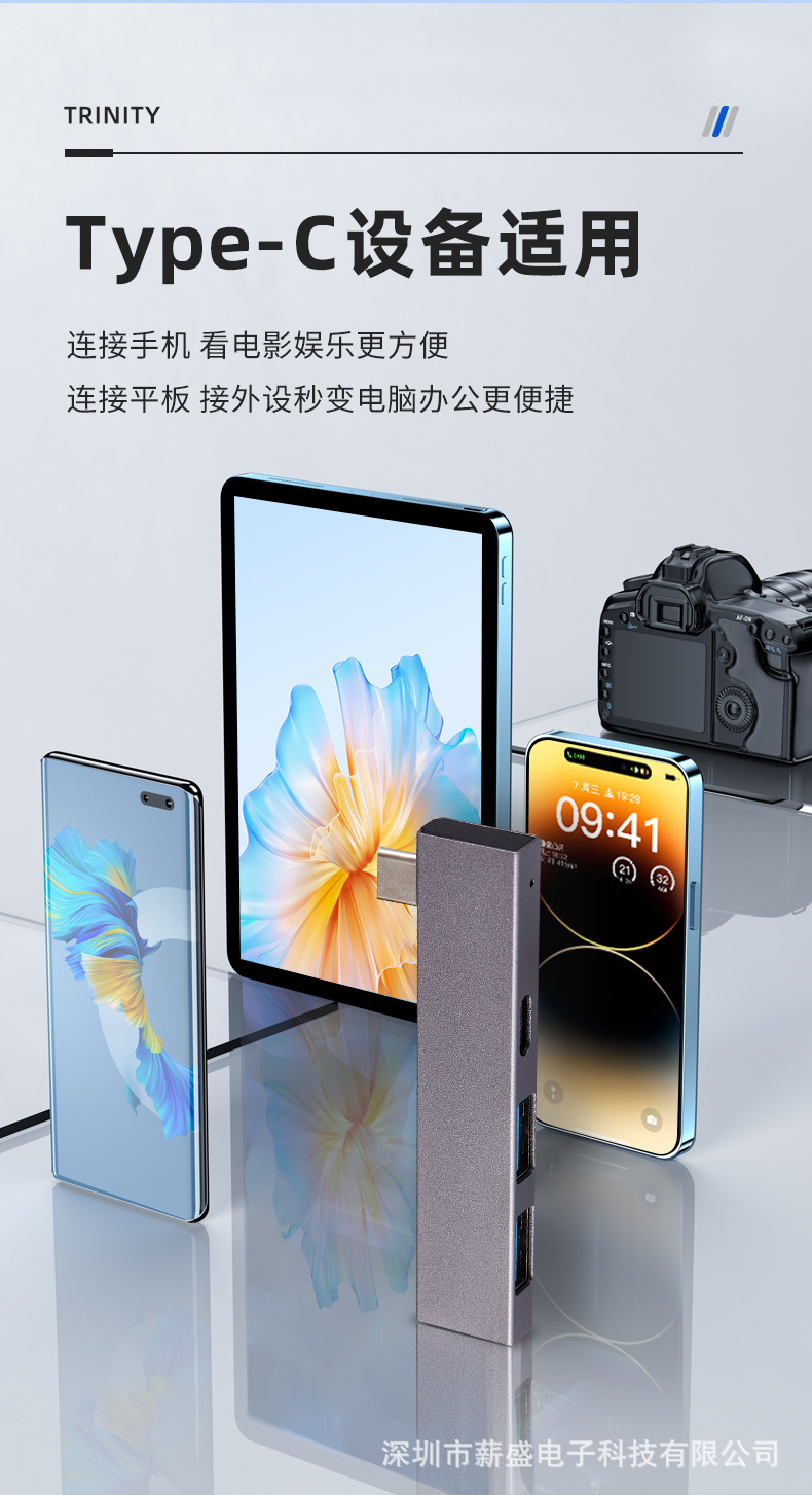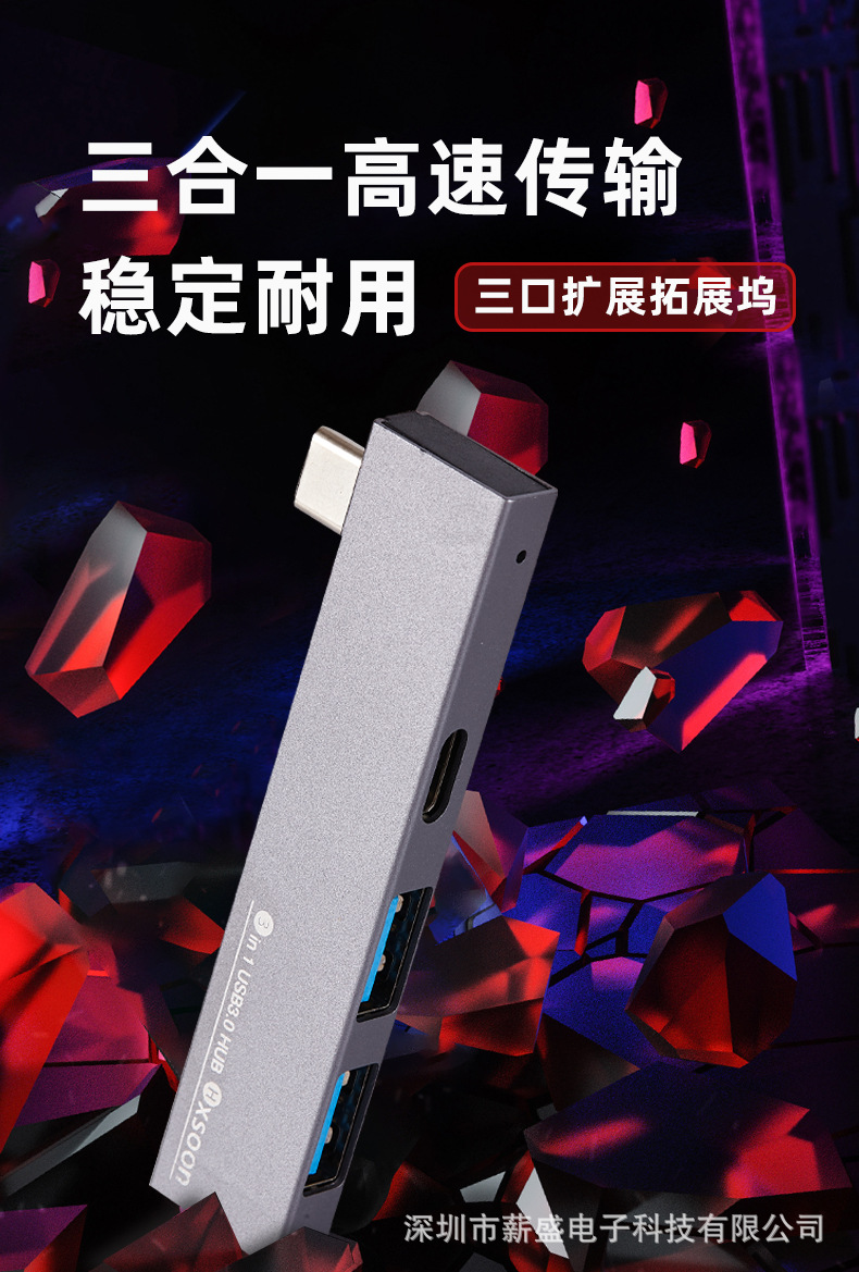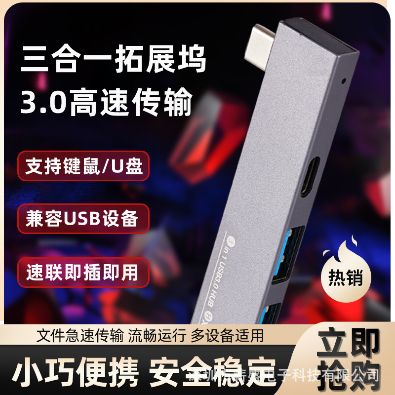 멀티포트 도킹 스테이션, 3포트 타입3.0 타입C 컨버터, USB3 전송 타입-허브