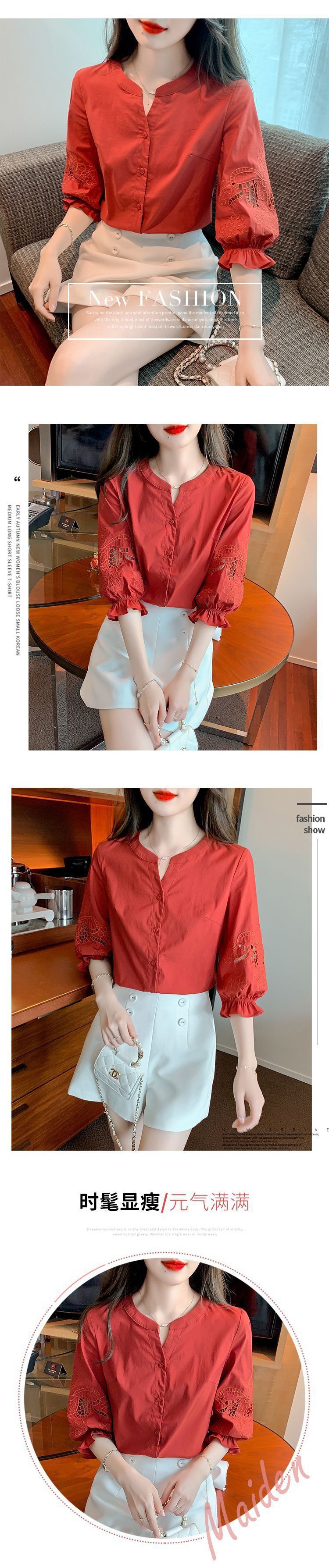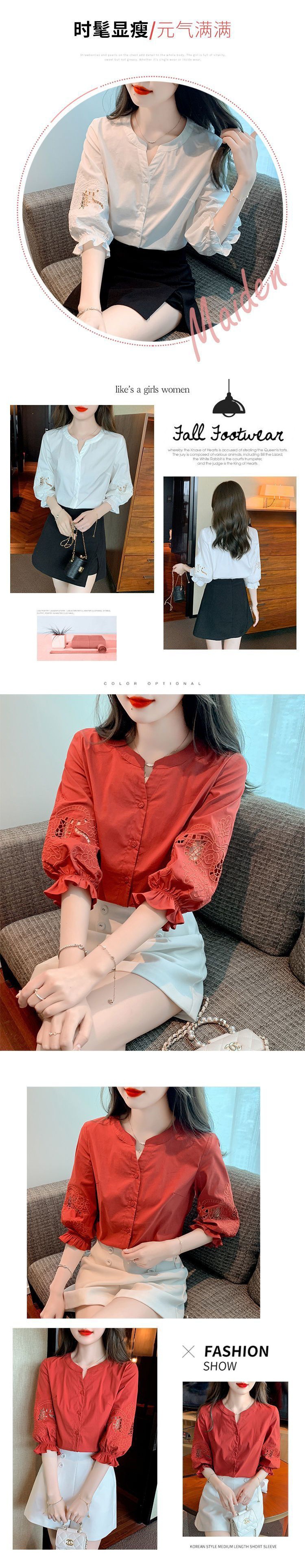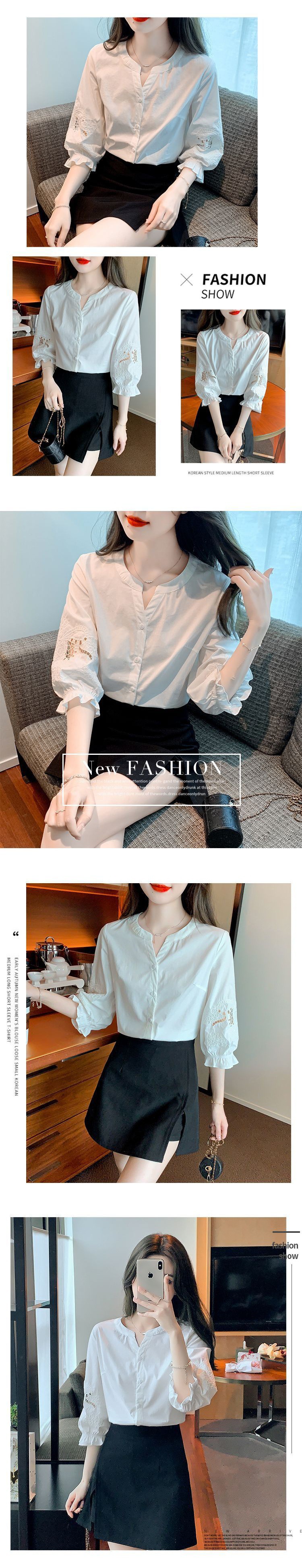 Simon Reiner 여름 새로운 반팔 쉬폰 셔츠 여성용 새 퍼프 슬리브 미드 슬리브 탑 세련된 세븐 포인트 슬리브스토어 가기