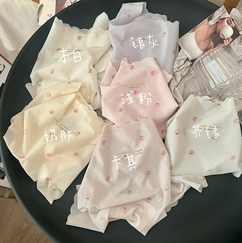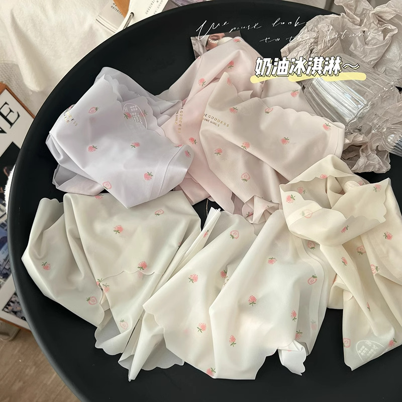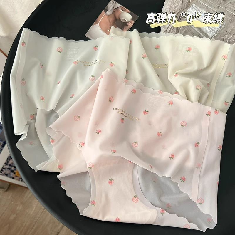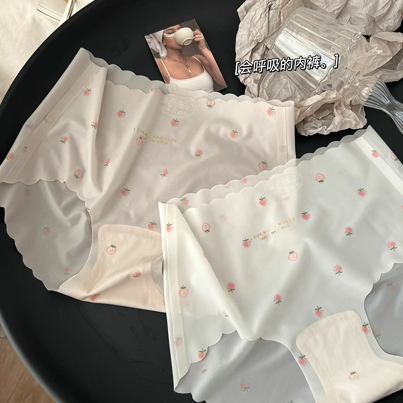 딸기 아이스 실크 속옷 여성 추적없는 소녀의 얇은 빠른 건조 학생의 순수한 면화 중간 허리 소녀의 항균 여성의 여름스토어 가기