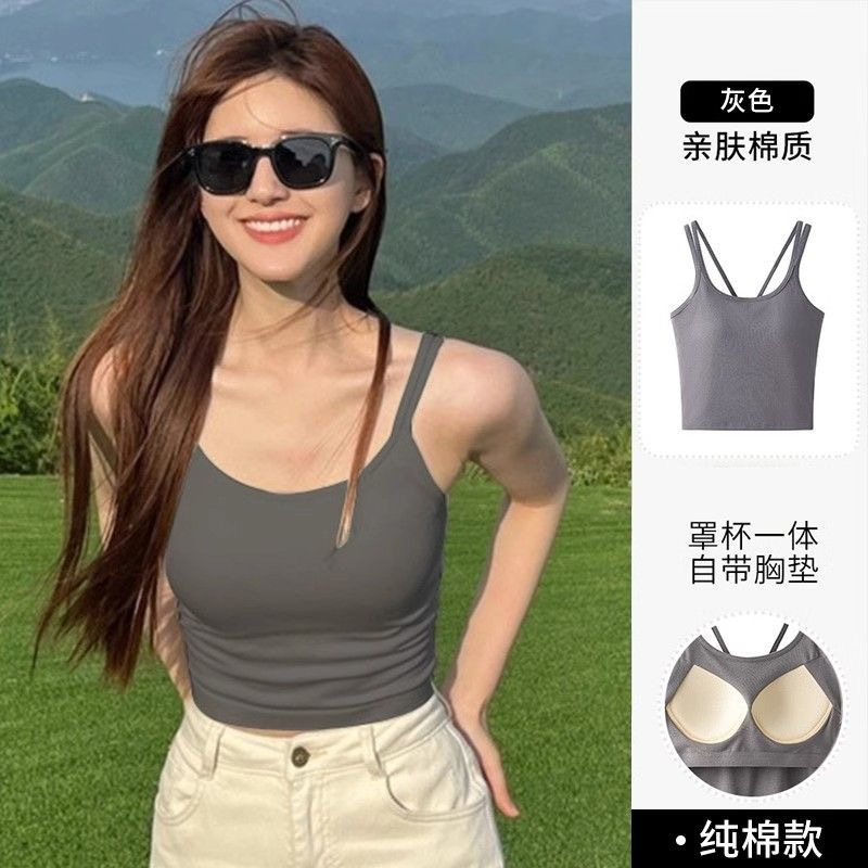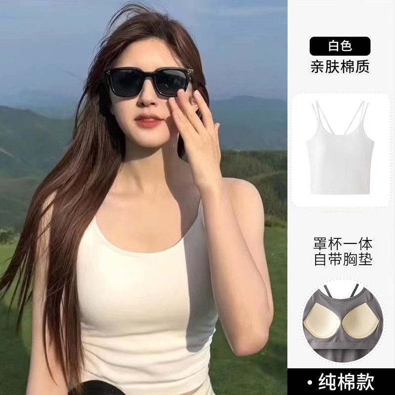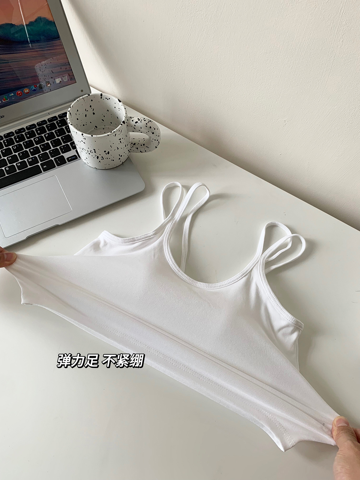 자오 루시 같은 스타일 화이트 카미 솔 여성 여름 조끼 가슴 패드 브래지어 순수 욕망 스타일 U-넥 슬림 핏 슬림 쇼트 탑스토어 가기