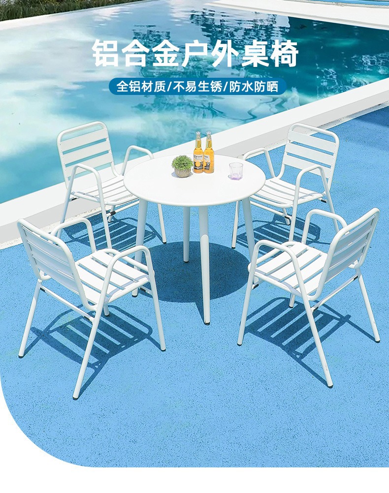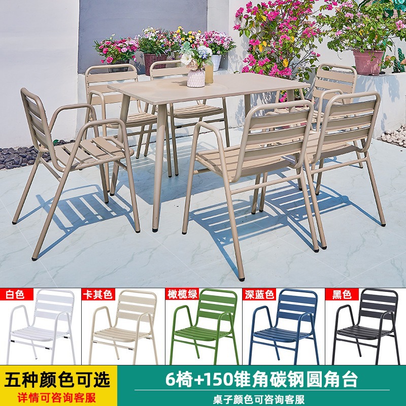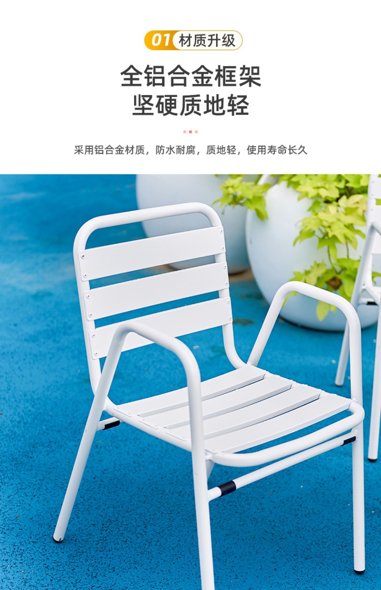 간단한 야외 테이블과 의자 조합 발코니 안뜰 야외 우유 차 가게 카페 의자 북유럽 알루미늄 합금 레저 의자스토어 가기