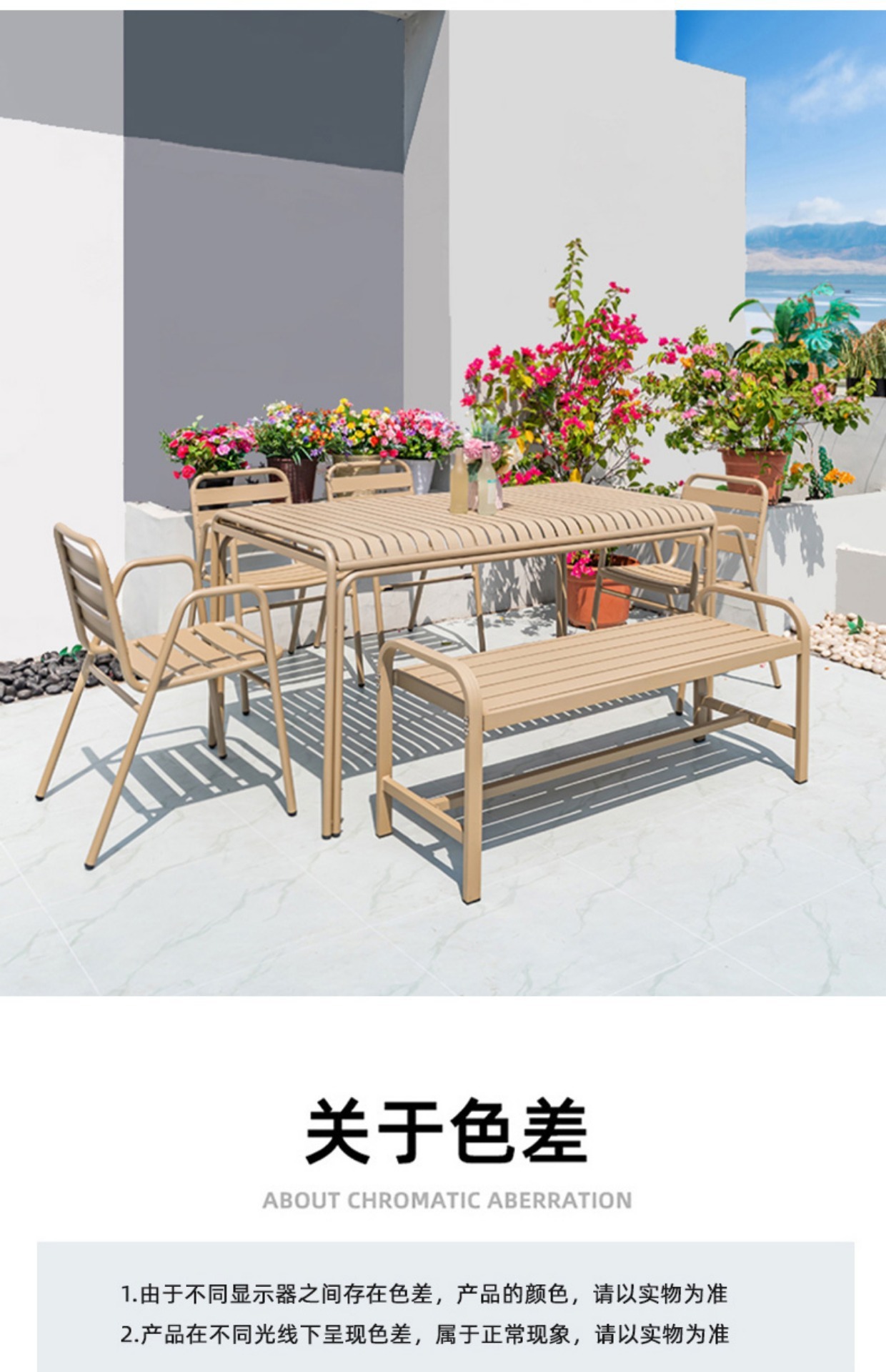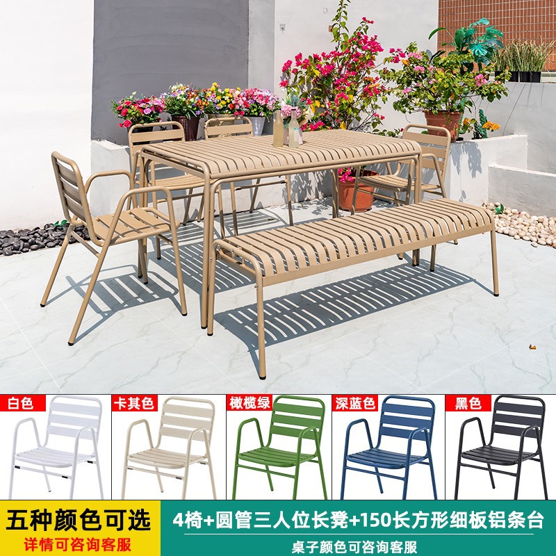 • 4 의자 원형 튜브 3 석 벤치 _ 150 직사각형 얇은 판 알루미늄 테이블