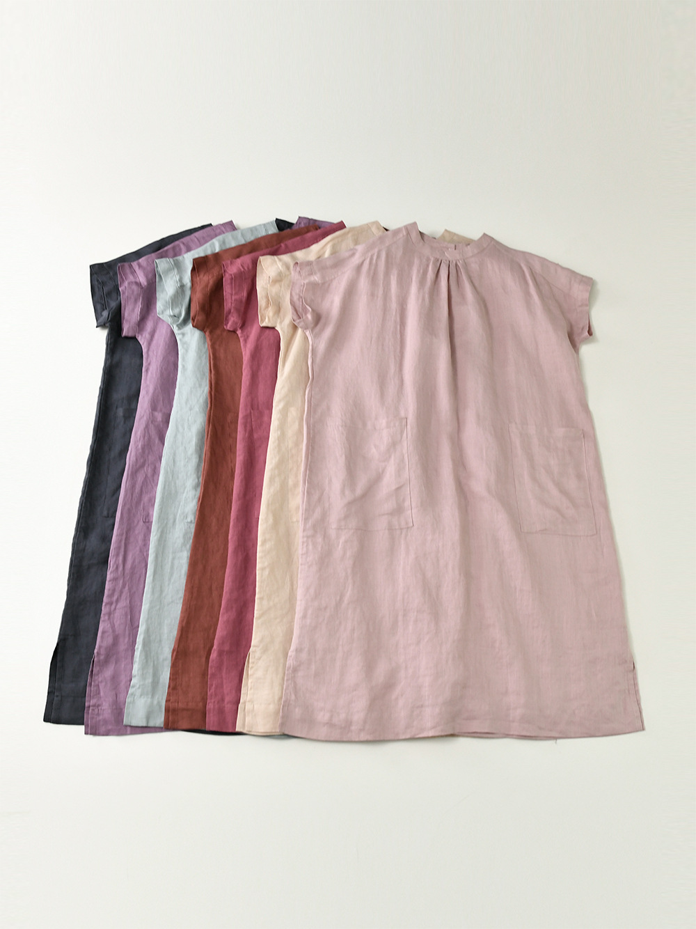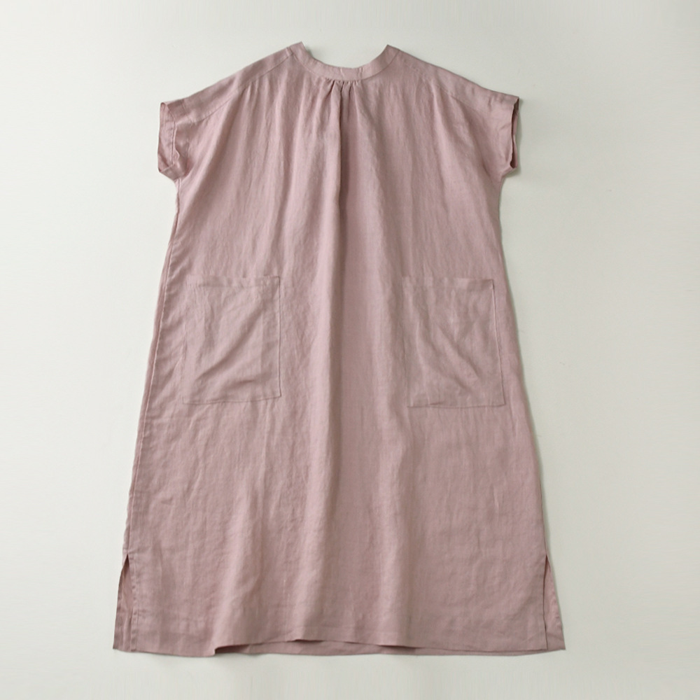 캐주얼 예술적 스타일 라운드 넥 풀오버 솔리드 컬러 반팔 라미 원피스 여성용 느슨한 살 커버 슬리밍 긴 원피스 주름
