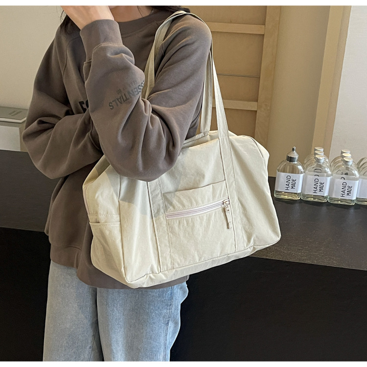 한국 스타일 나일론 헝겊 가방 경량 대용량 방수 핸드 수하물 여성 가방 여행 어깨 가방 통근 일본식 헝겊 가방