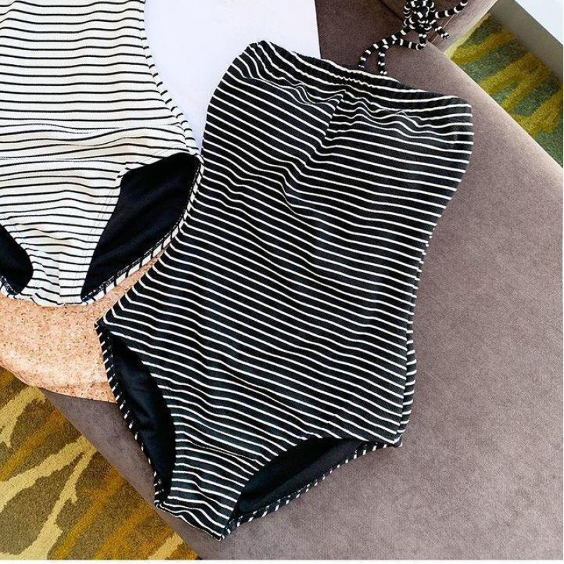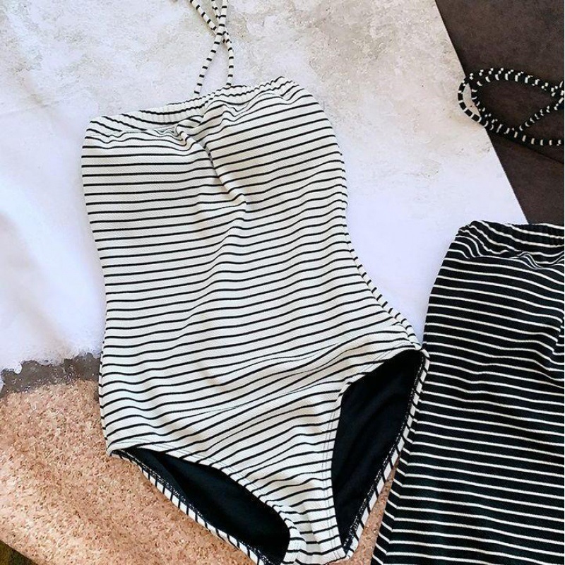 공장 도매 한국 줄무늬 순수 목 수영복 여성 백리스 섹시한 슬림 배꼽 커버 휴가 온천 수영복스토어 가기