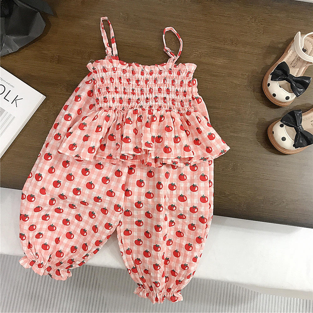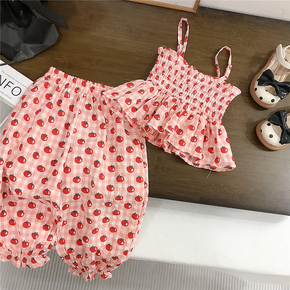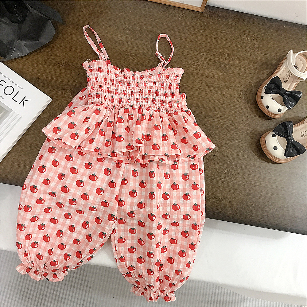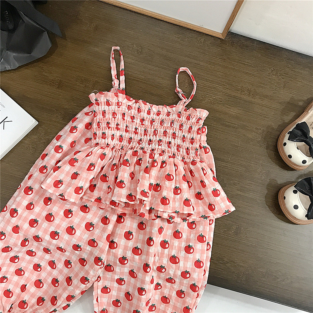 한국 아동복 어린이 데님 세트 여름 새로운 소녀 유행 서스펜더 탑 와이드 다리 바지 투피스 대외 무역