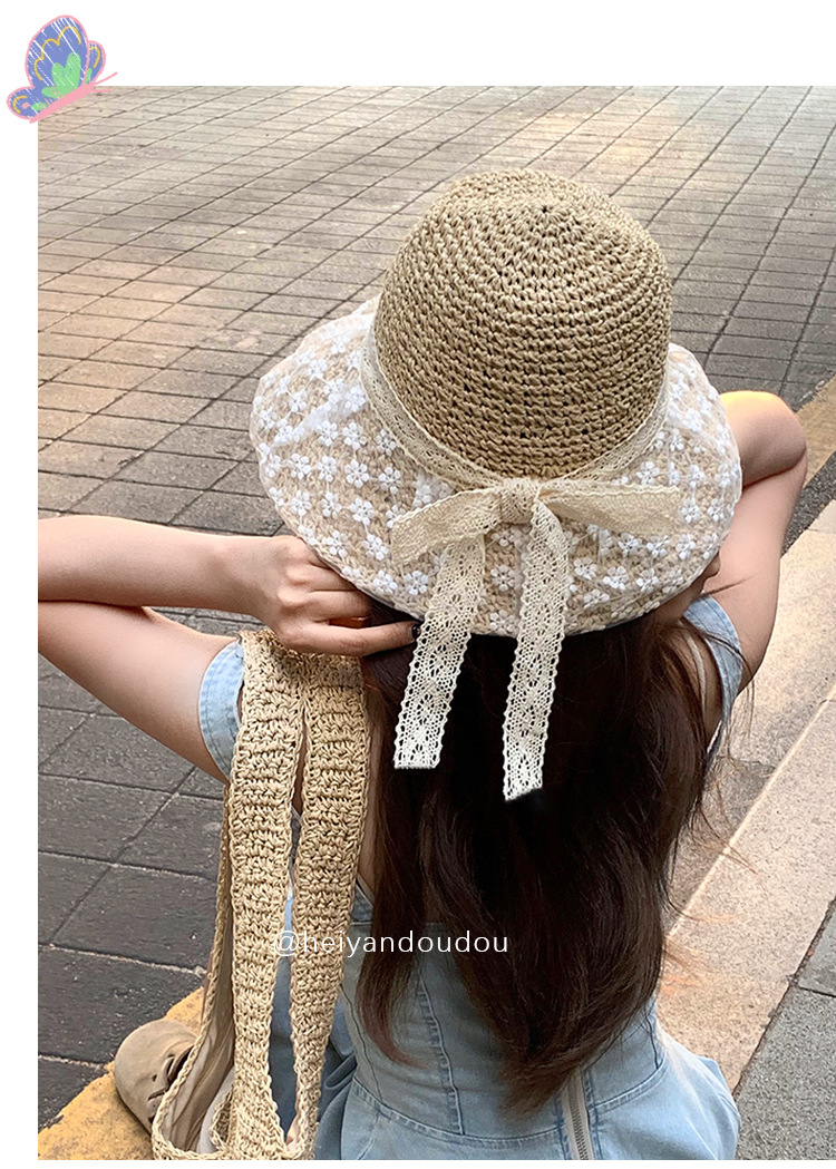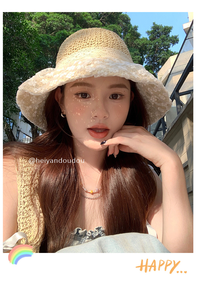 밀짚 모자 여성의 새로운 일본 스타일 신선한 스타일 레이스 밀짚 모자 여름 여행 선 스크린 모자 큰 브림 비치 햇살스토어 가기