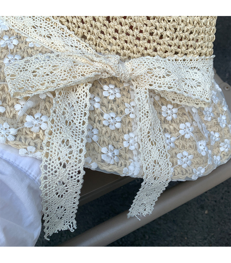 밀짚 모자 여성의 새로운 일본 스타일 신선한 스타일 레이스 밀짚 모자 여름 여행 선 스크린 모자 큰 브림 비치 햇살