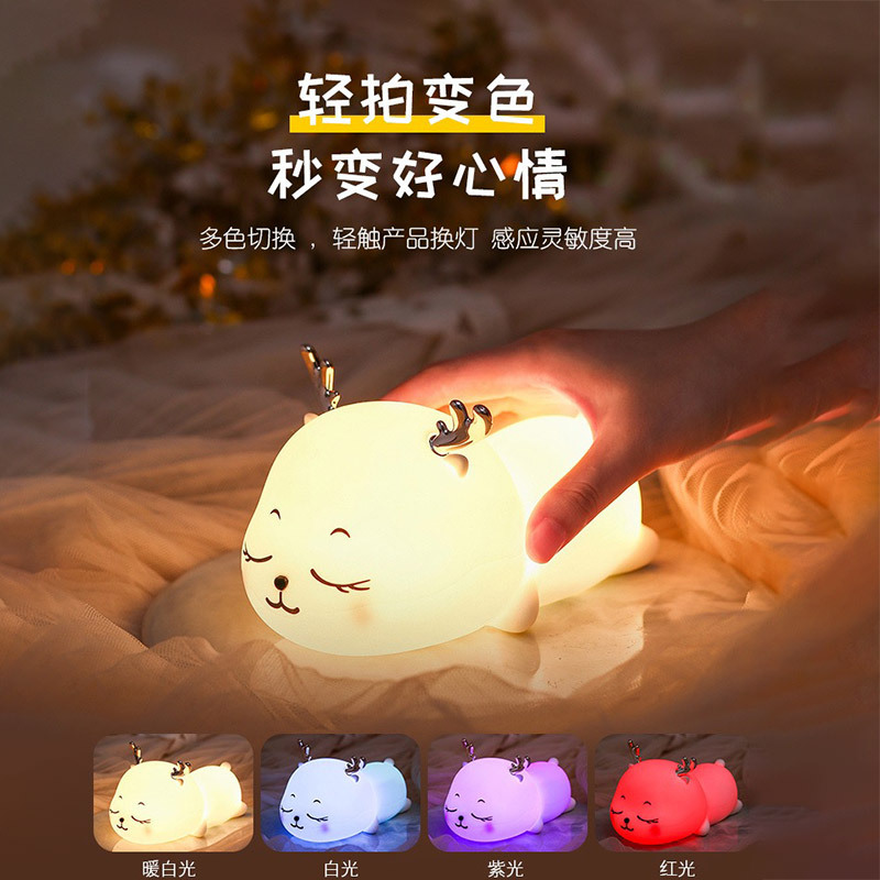 밤 빛 실리콘 팻 빛 다채로운 USB 충전 귀여운 토끼 치료 만화 LED 벤트 분위기 빛 국경 전자 상거래스토어 가기