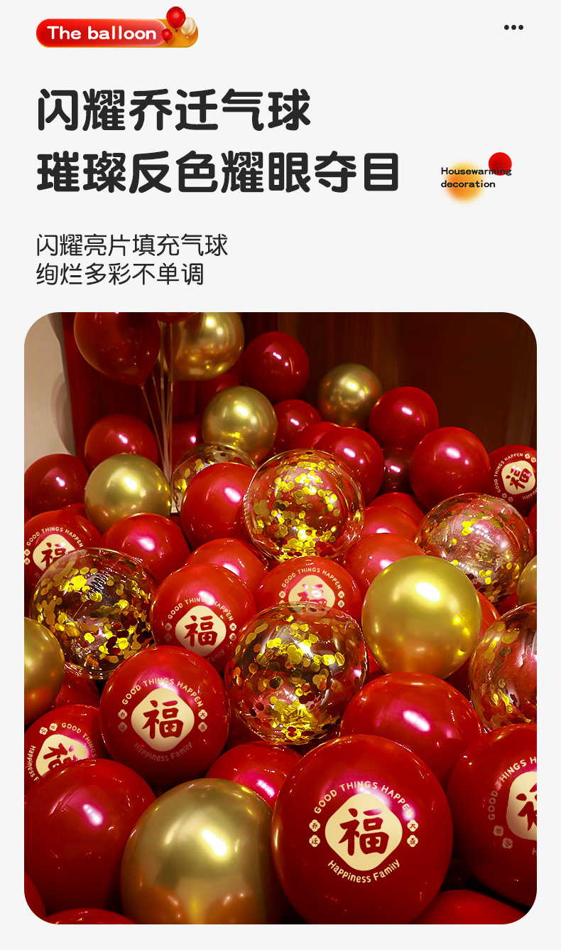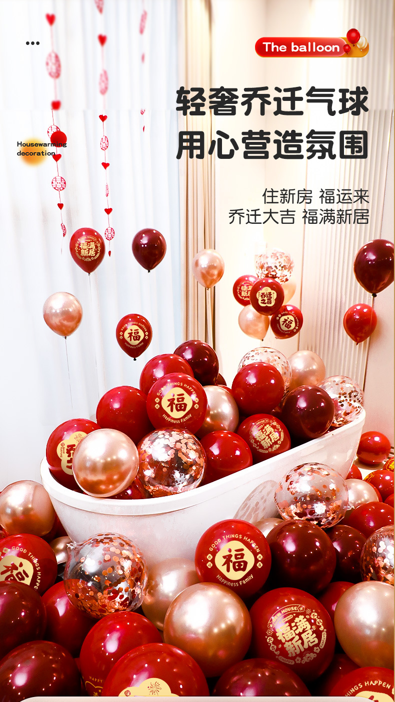 乔迁之喜装饰气球福字新居客厅场景布置搬家入伙新房进宅仪式用品