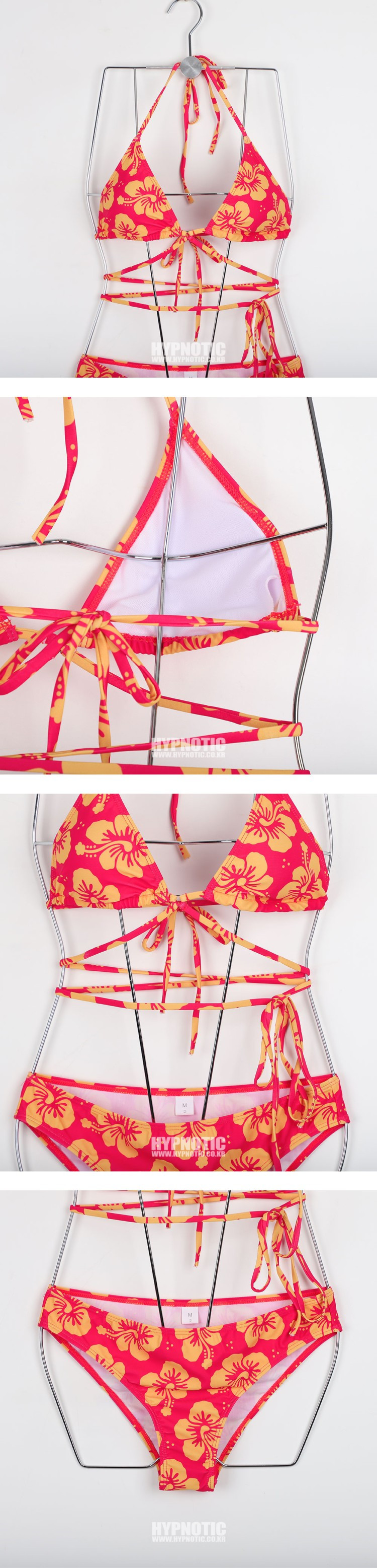 Ins 스타일 빈티지 인쇄 뜨거운 소녀 크로스 스트랩 비키니 3 피스 세트 유럽과 미국의 섹시한 해변 휴일 수영복 여성용스토어 가기