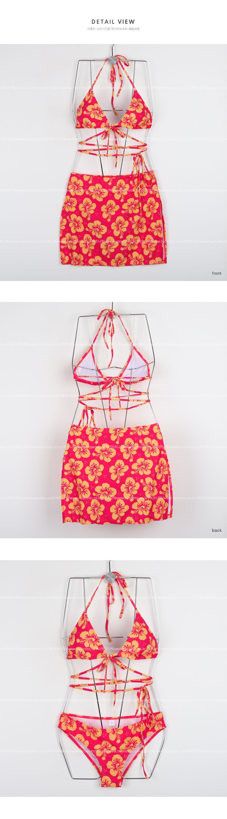Ins 스타일 빈티지 인쇄 뜨거운 소녀 크로스 스트랩 비키니 3 피스 세트 유럽과 미국의 섹시한 해변 휴일 수영복 여성용