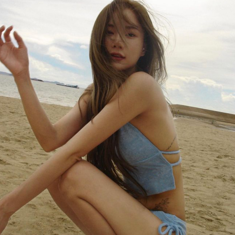 24 새로운 한국 스타일 분할 수영복 여성용 섹시한 단색 로우 컷 스트랩 수영복 유행 달콤한 온천 휴가 수영복