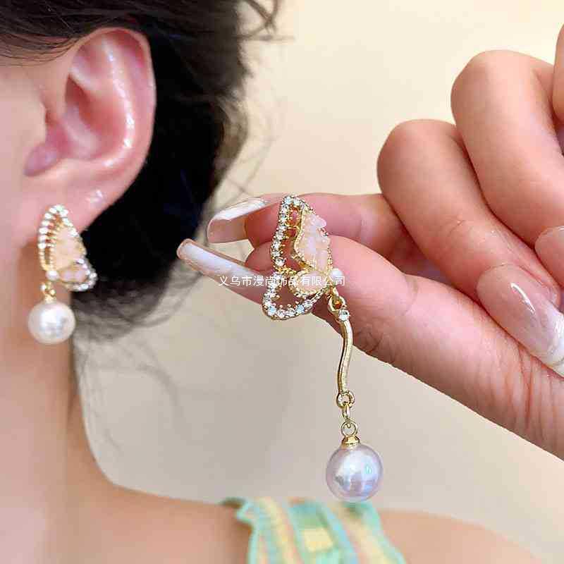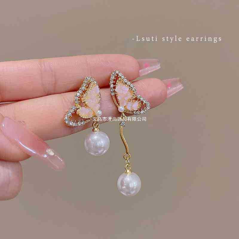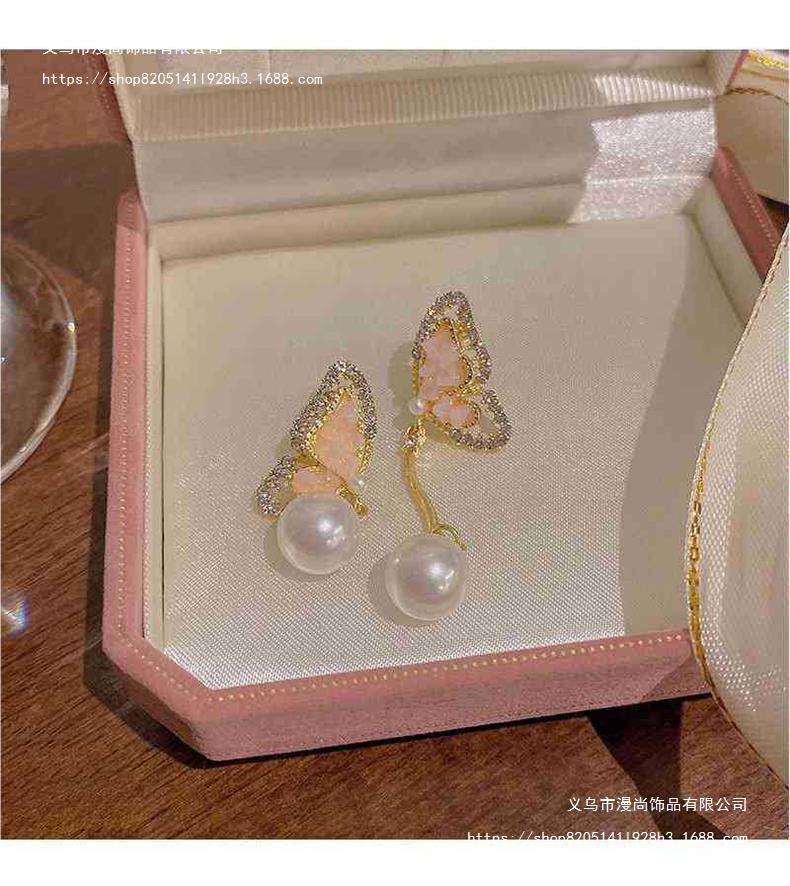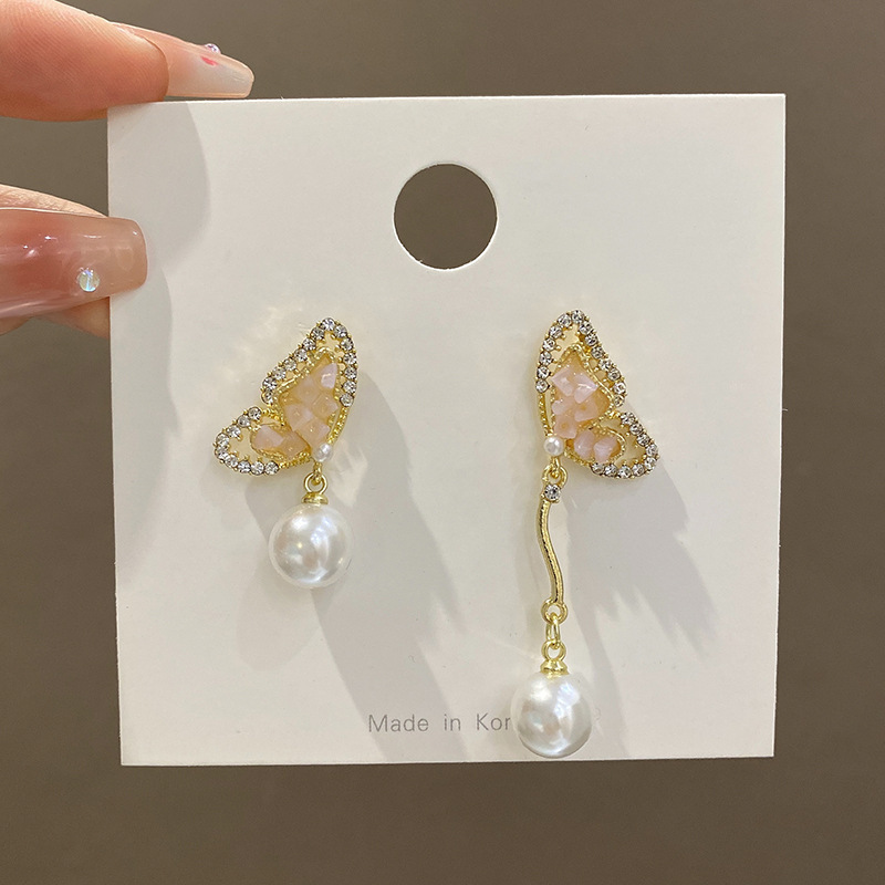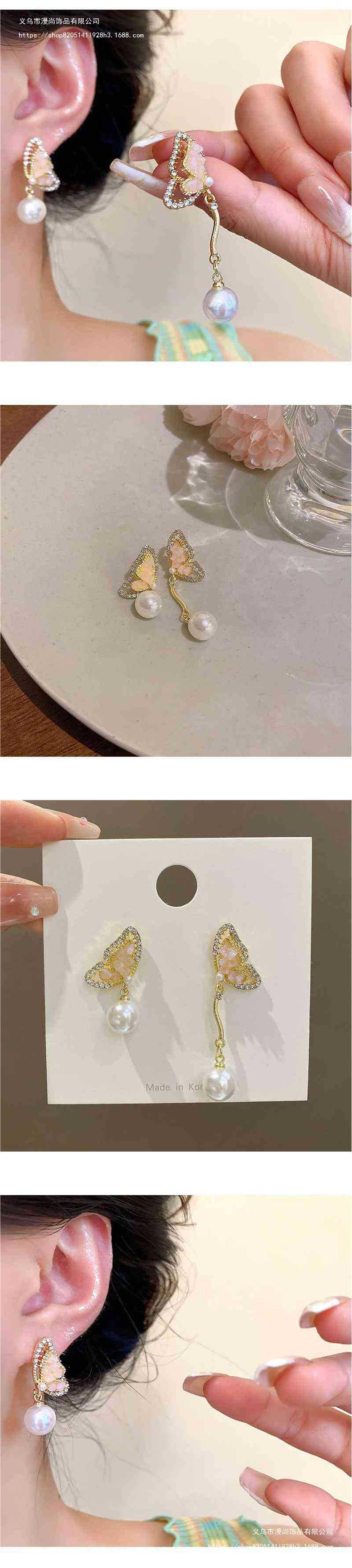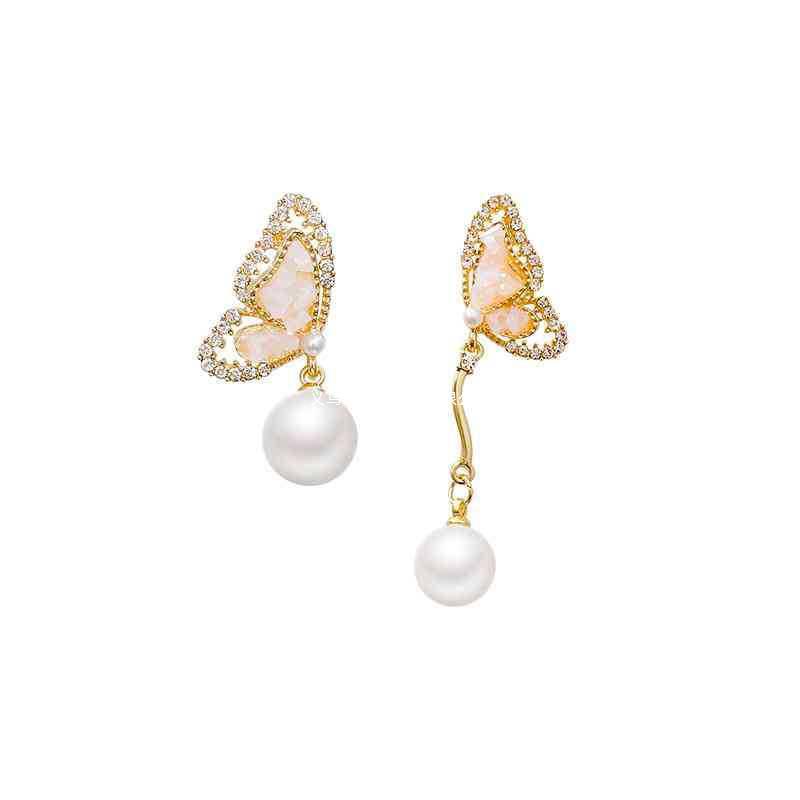 비대칭 나비 진주 귀걸이 여성 2024 뉴 스타일 라이트 럭셔리 틈새 디자인 하이 엔드 센스 귀걸이 한국 귀걸이스토어 가기