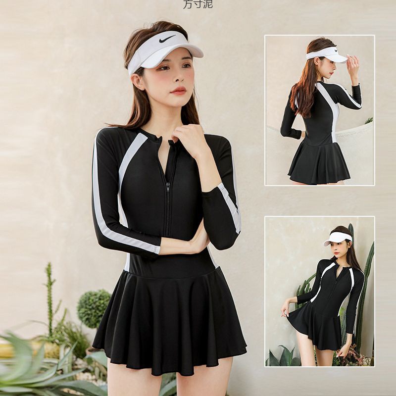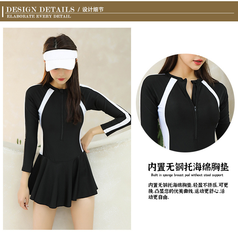 새로운 수영복 여성 프로 스포츠 원피스 스커트 플랫 앵글 보수적 인 배꼽 학생 긴 소매 온천 수영복 도매스토어 가기