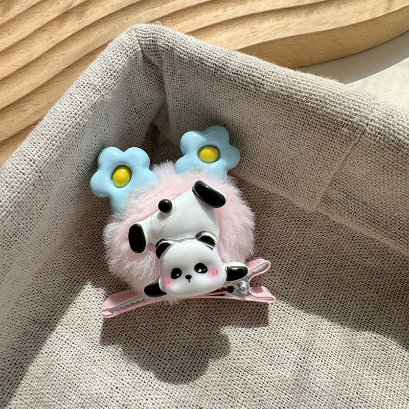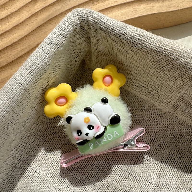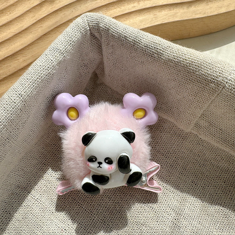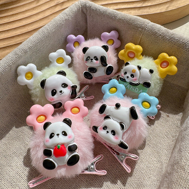 달콤한 소녀 꽃 귀 헤어 볼 헤어핀 덕빌 클립 귀여운 아기 팬더 헤어핀 사이드 클립 헤드웨어 한국어스토어 가기