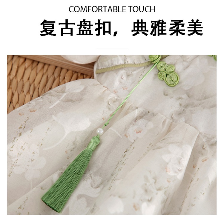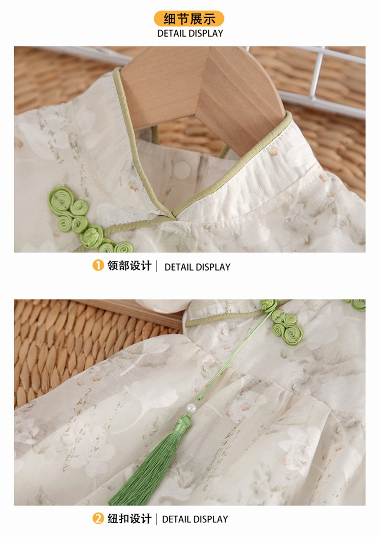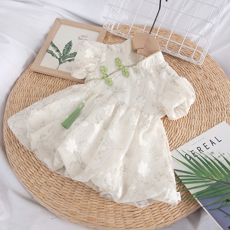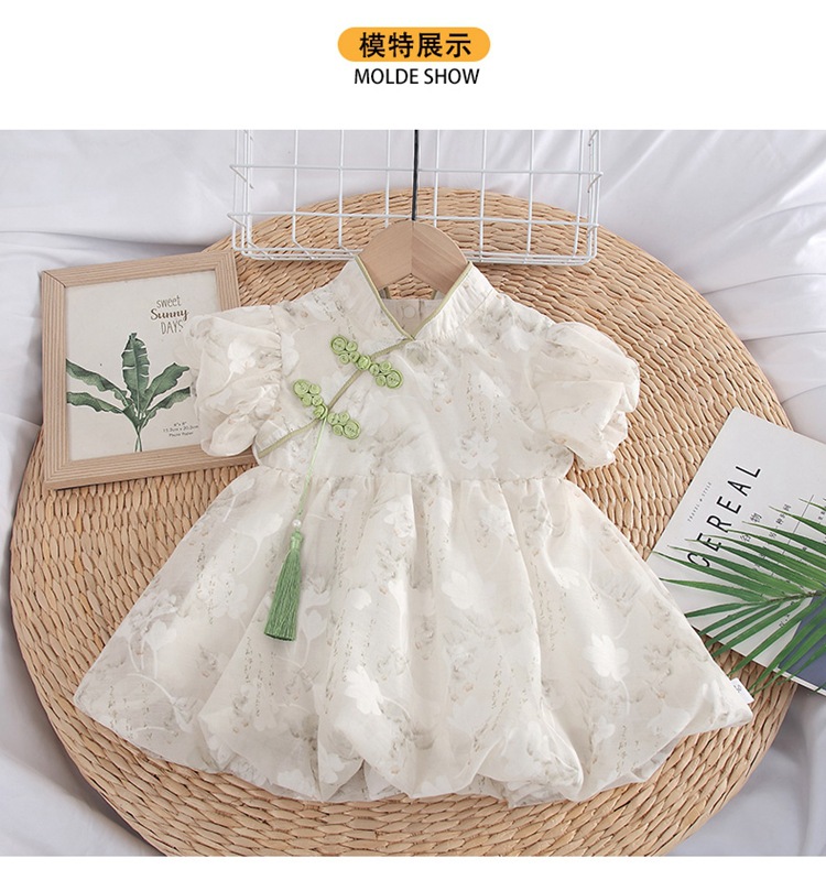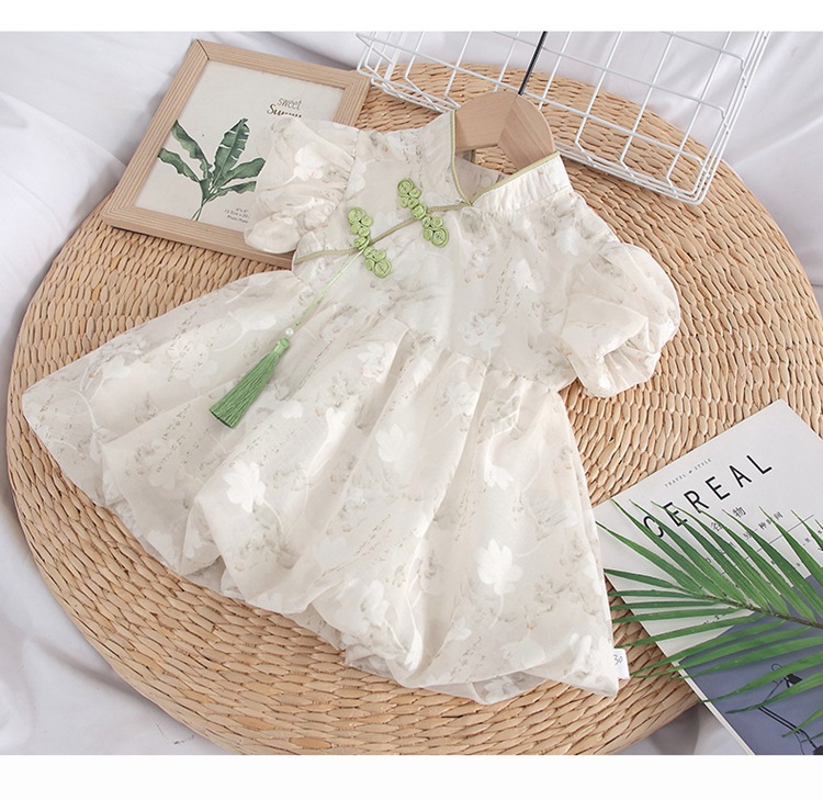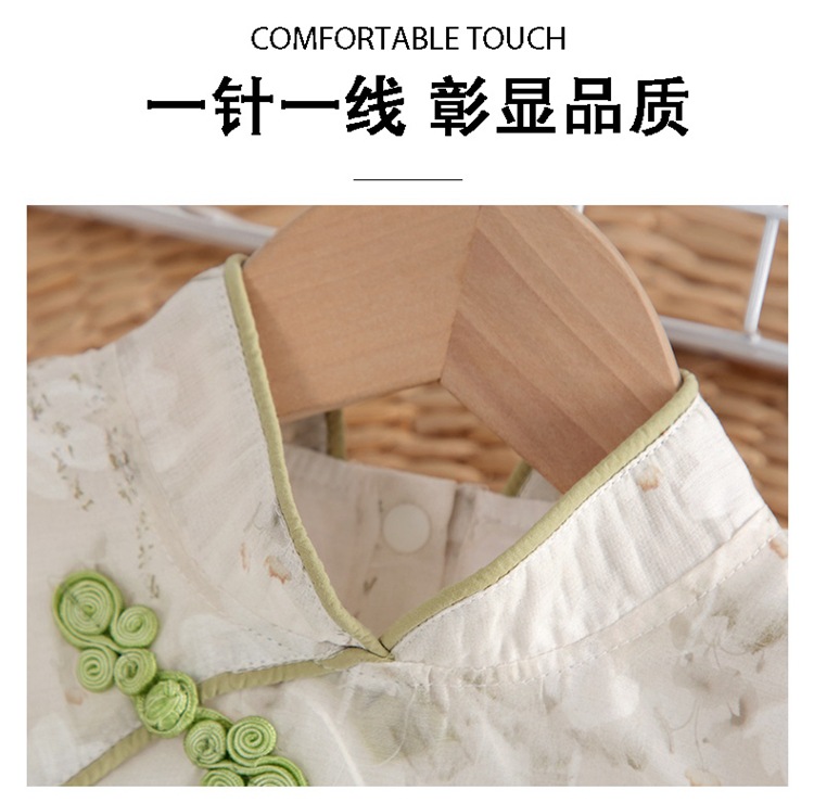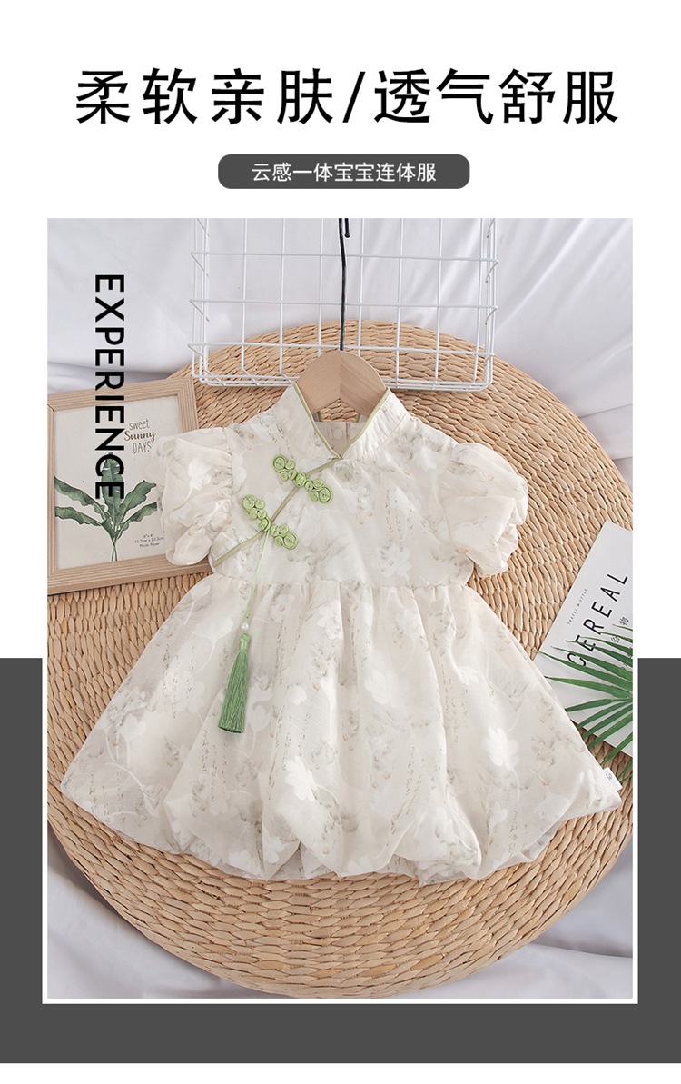 여름 귀여운 푹신한 치마 거즈 스커트 아기를위한 신선한 저지 점프 수트 어린이 아기 서양 스타일의 새로운 중국 스타일 등반 세트