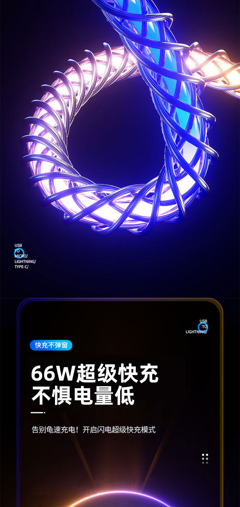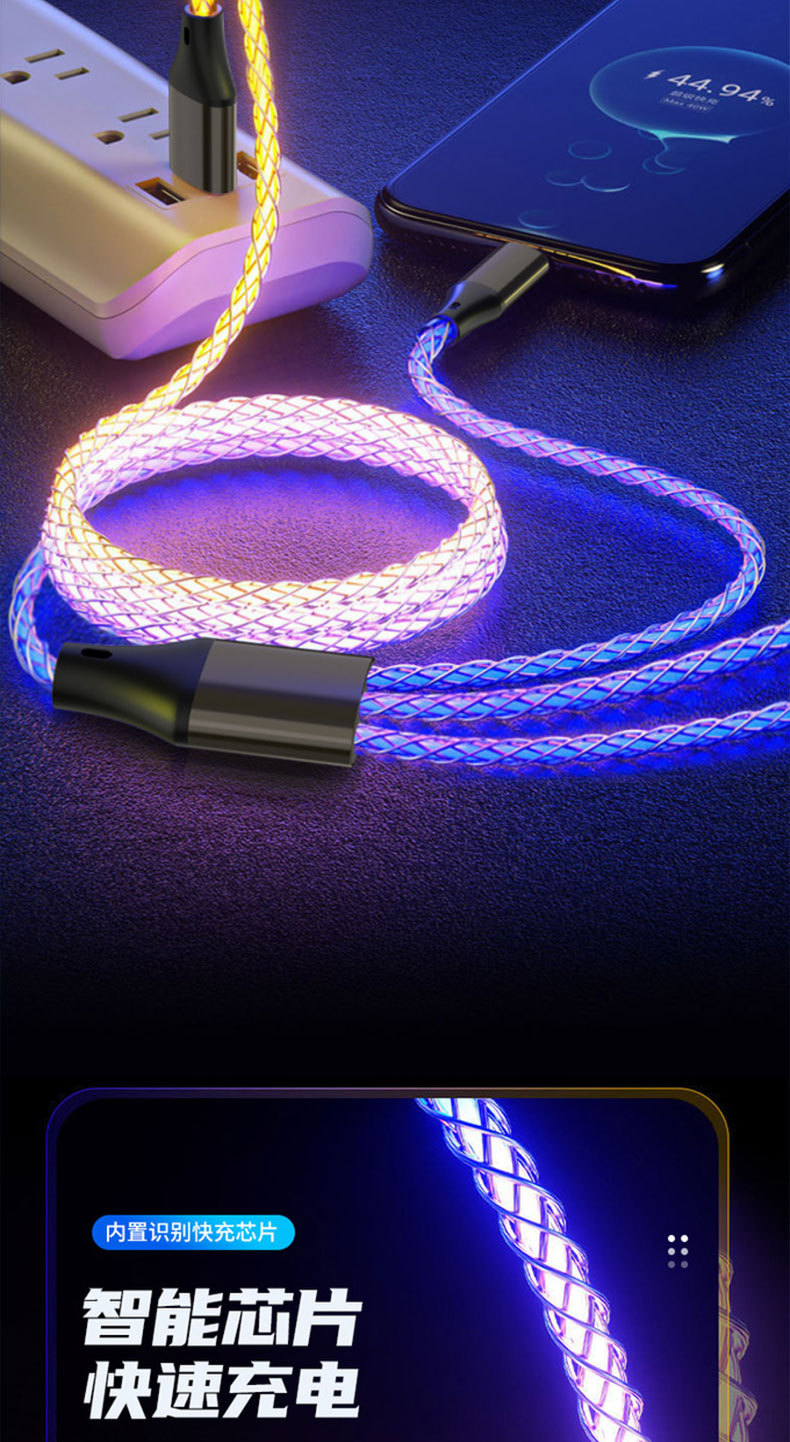 새로운 RGB 그라디언트 1 대 3 데이터 라인 발광 스트리머 자동차 범용 고속 충전 와이어 3 대 1 대기 조명스토어 가기
