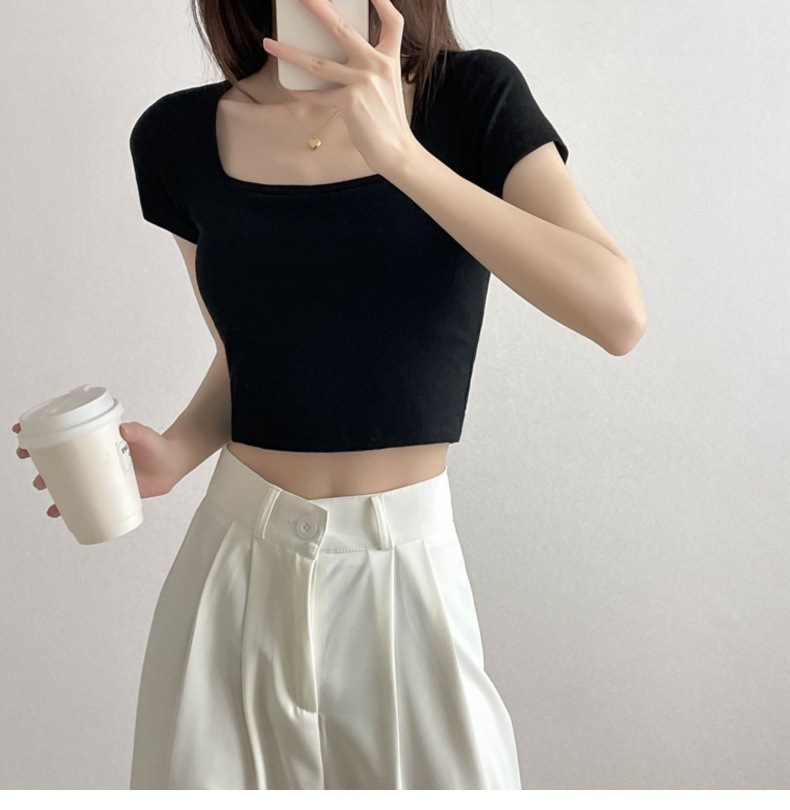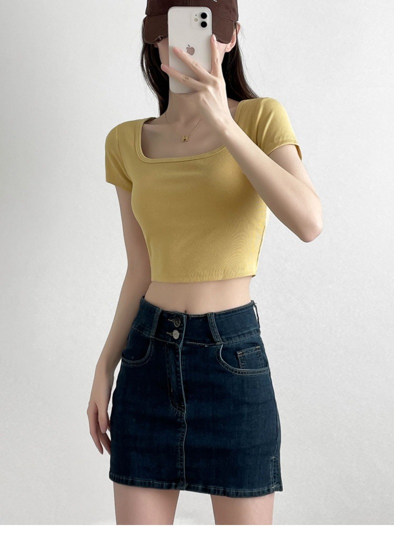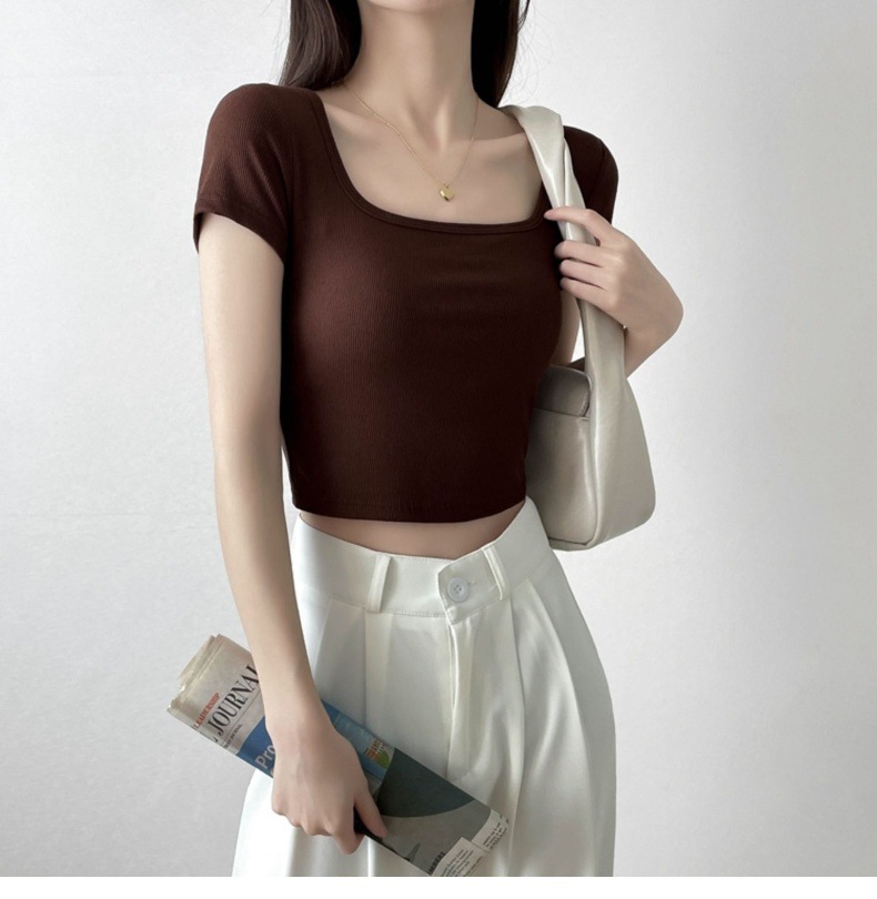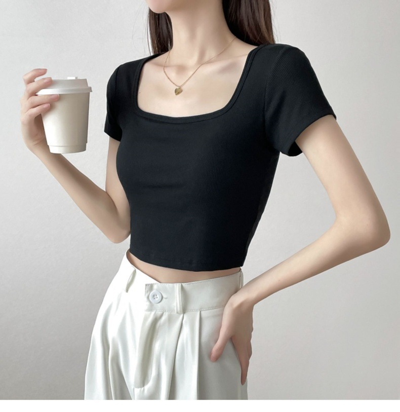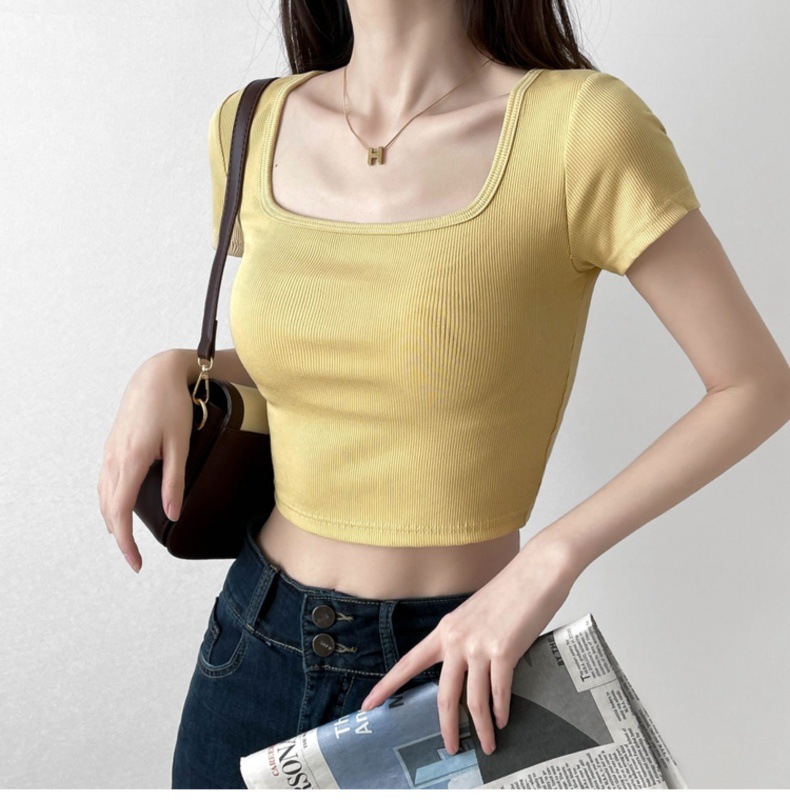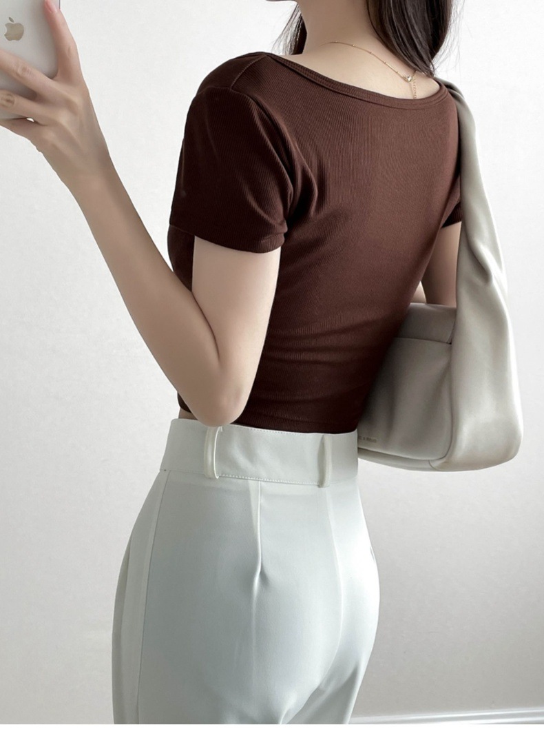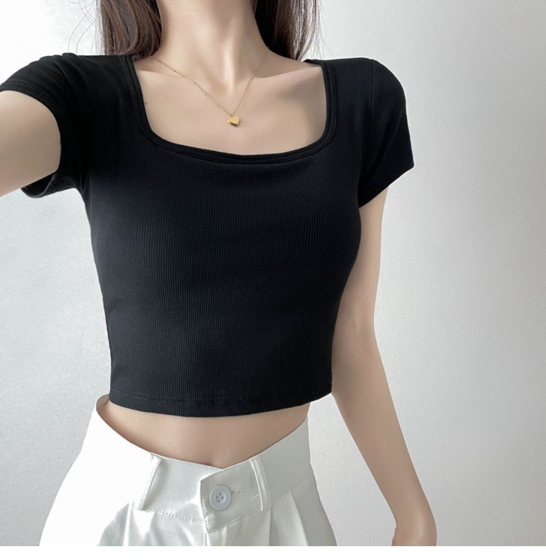 흉부 패드 스레드 스퀘어 넥 여성용 아우터 브라 원피스 배벨에 노출 된 반소매베이스 탑 얇은 여름 얇은 짧은 반소매 티셔츠
