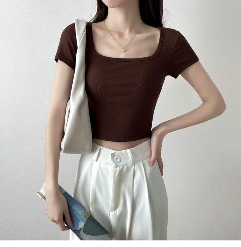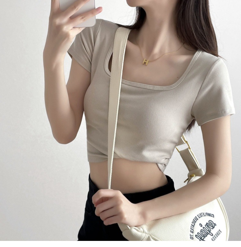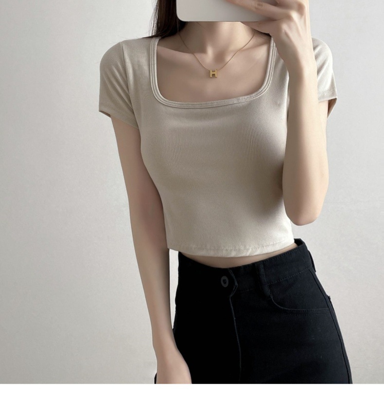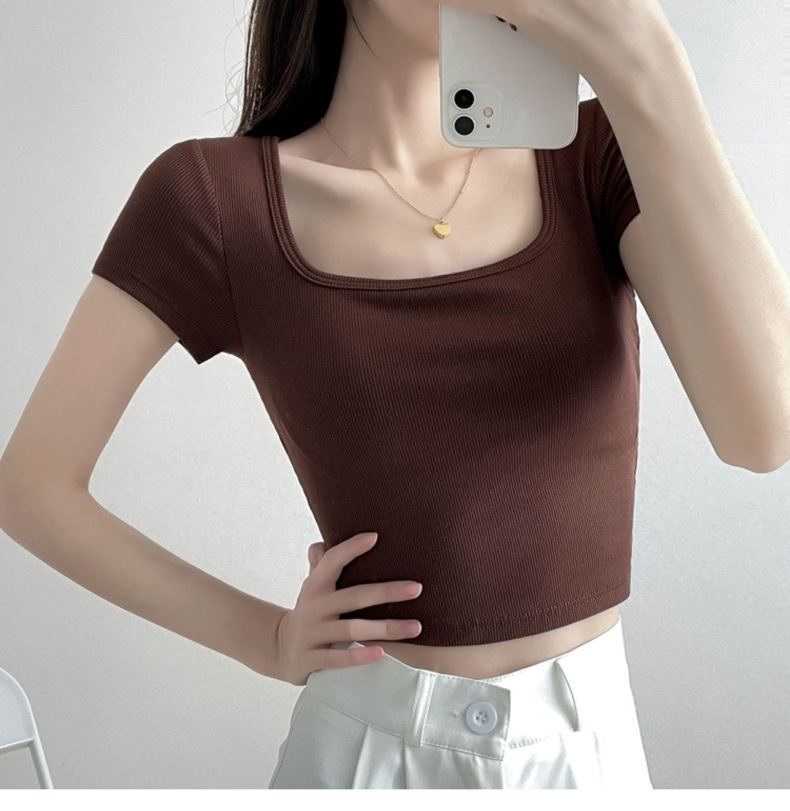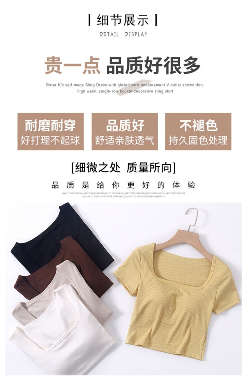 흉부 패드 스레드 스퀘어 넥 여성용 아우터 브라 원피스 배벨에 노출 된 반소매베이스 탑 얇은 여름 얇은 짧은 반소매 티셔츠스토어 가기