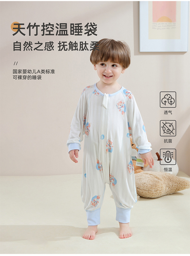 안양 아기 어린이 착용 아기 다리 분할 슬리핑 백 대나무 면 아기의 에어컨이 설치된 방 킥 방지 아기의 일정한 온도 슬리핑 백스토어 가기