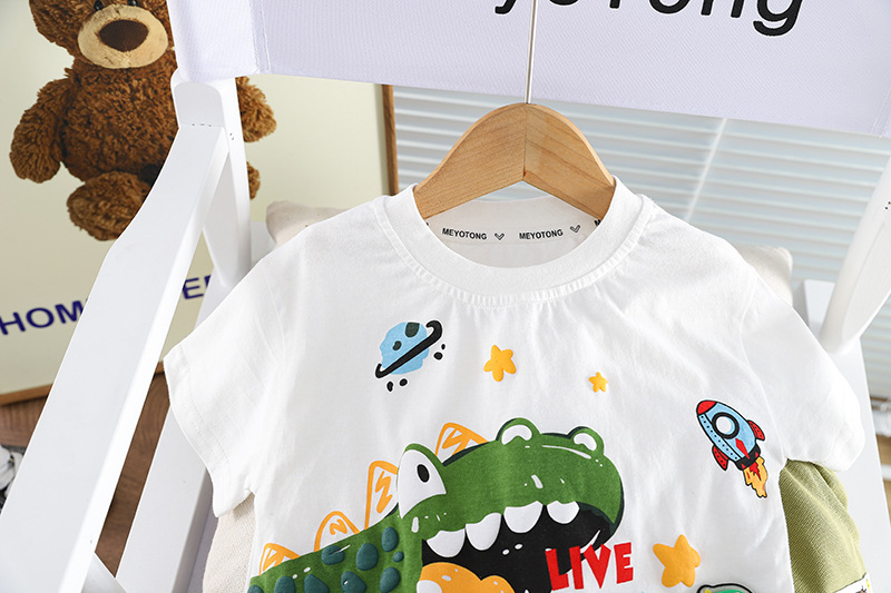 여름 소년 반팔 세트 새로운 도착 아기 소년 어린이 세트 큰 공룡 로켓 반팔 세트 트렌디 쿨스토어 가기