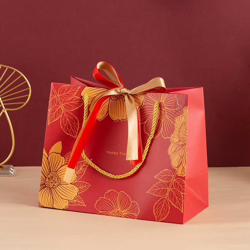 새로운 중국 스타일 빨간 선물 가방 핸드백 종이 가방 웨딩 선물 가방 다시 선물 가방 포장 가방 의류 가방