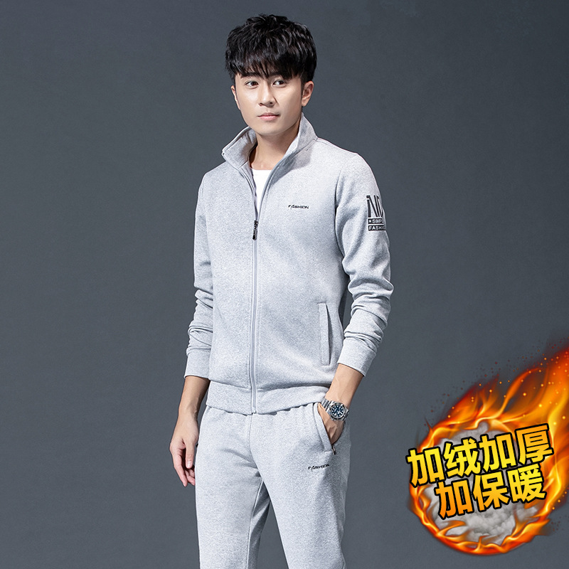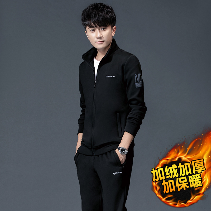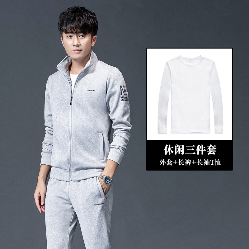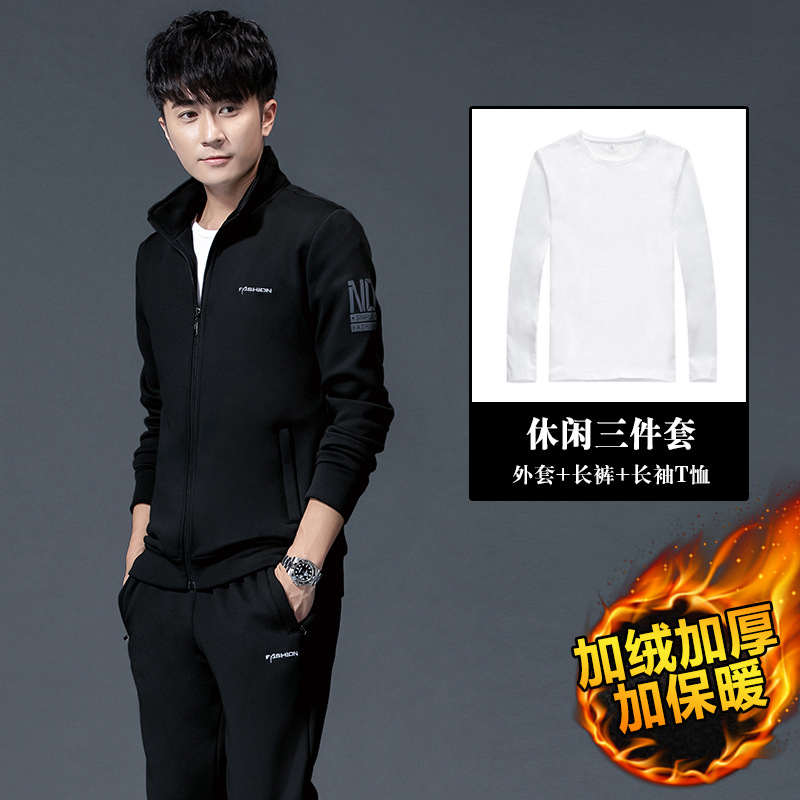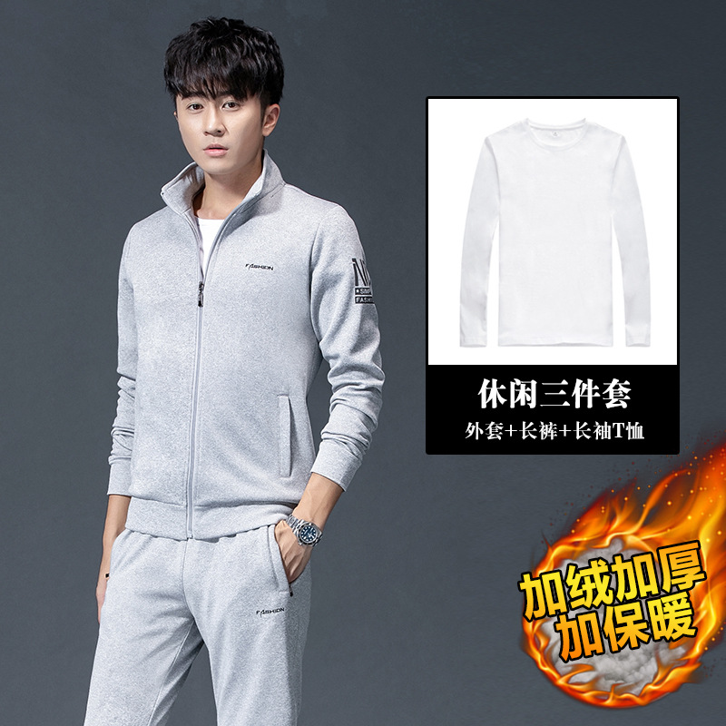 스포츠 세트 남성과 여성의 봄과 가을 레저 패션 기모 피트니스 달리기 스포츠웨어 3 피스 세트는 헤어 세대를 지원합니다.
