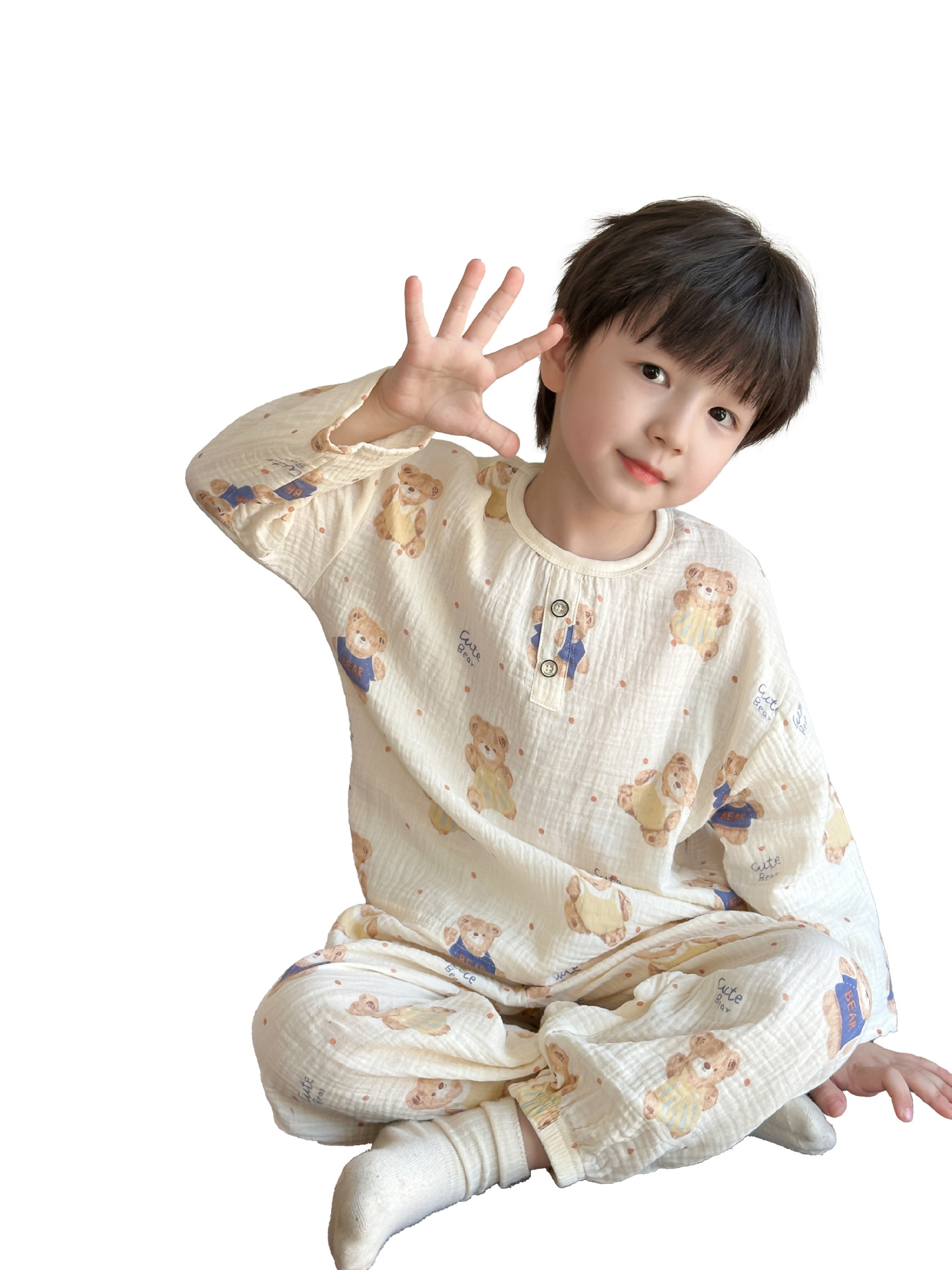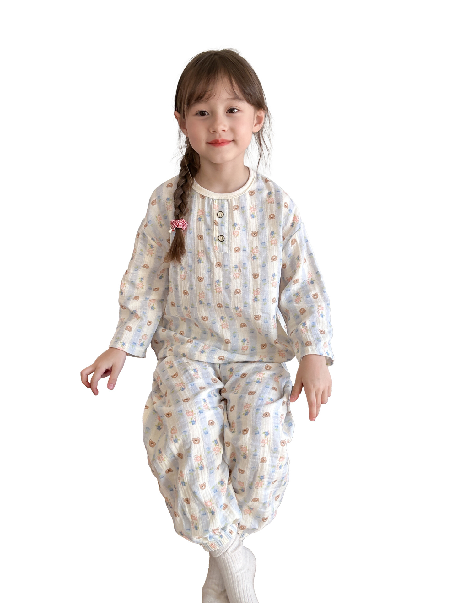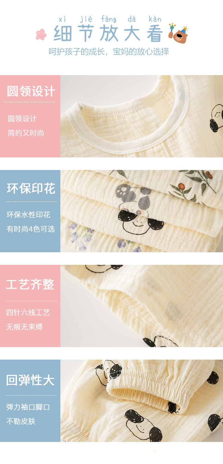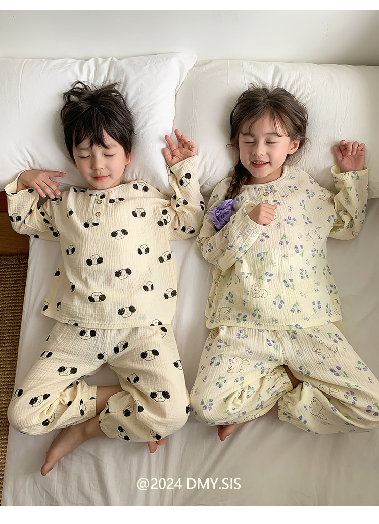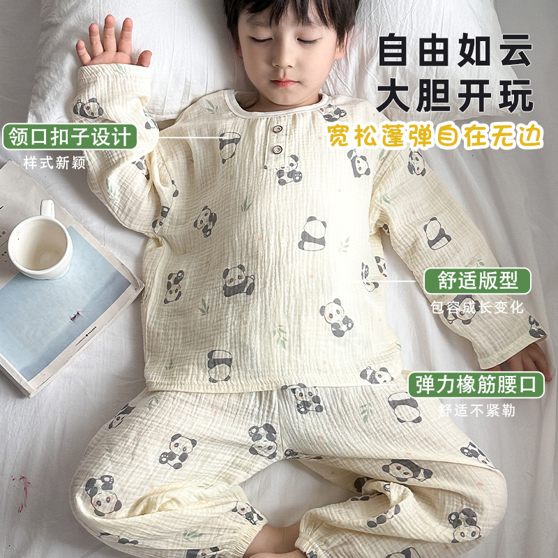 어린이 여름 더블 레이어 코튼 가제 파자마 세트 만화 소년 풀오버 홈 옷 여성용 긴팔 에어컨 옷스토어 가기