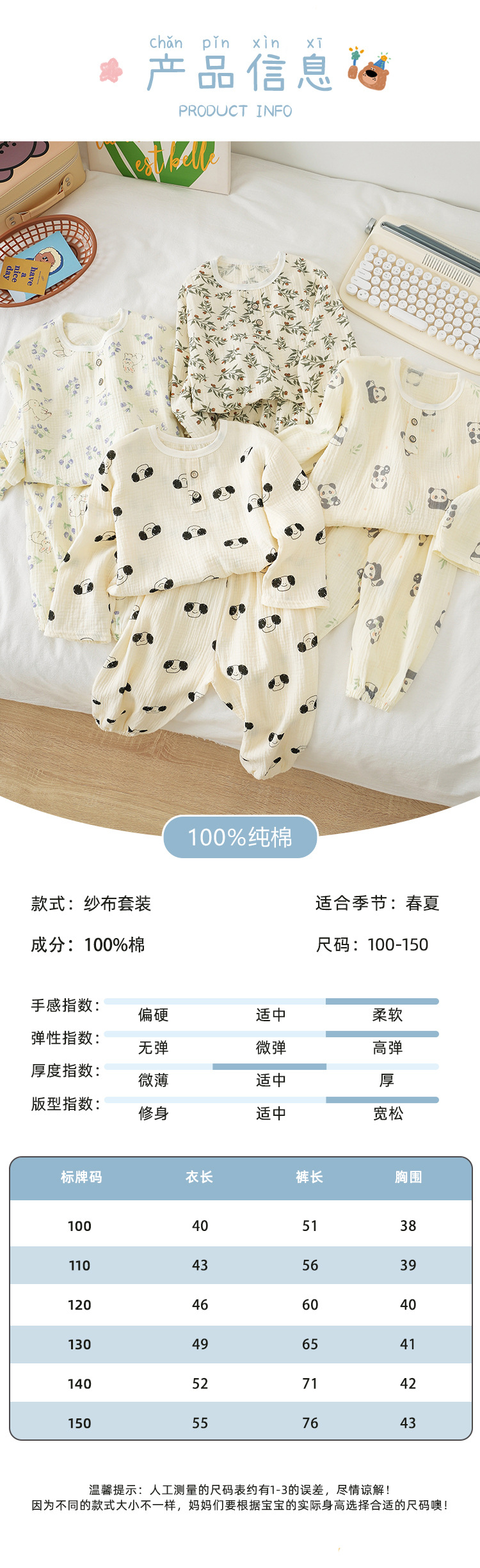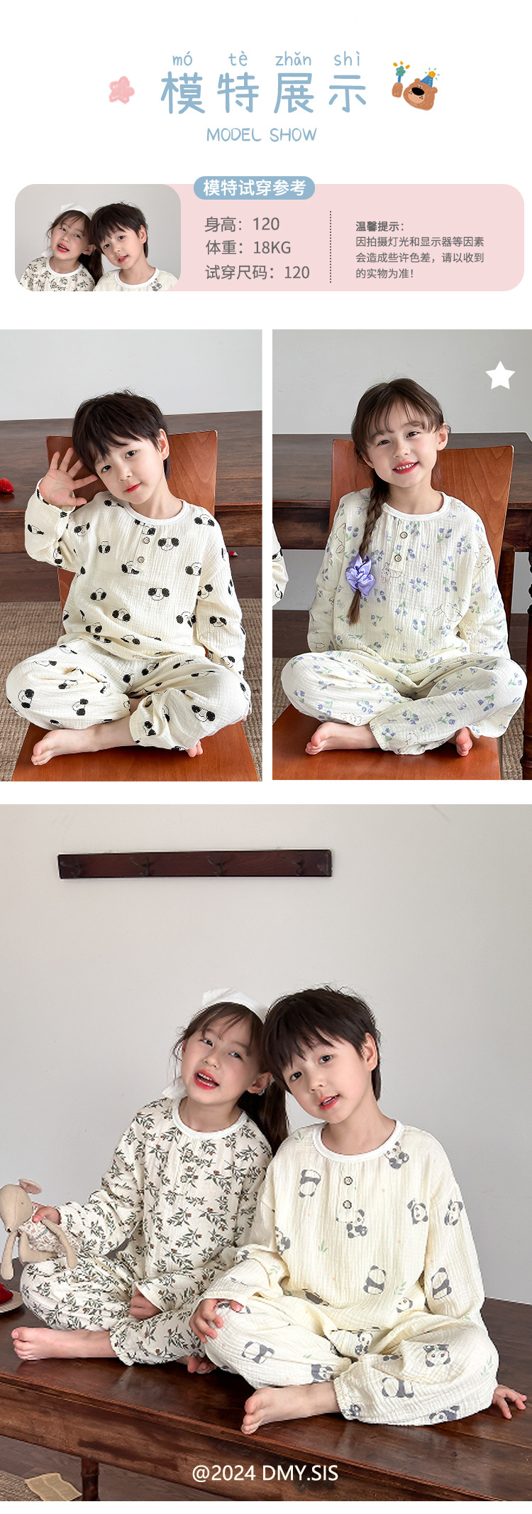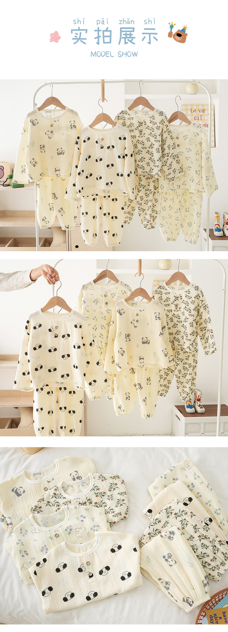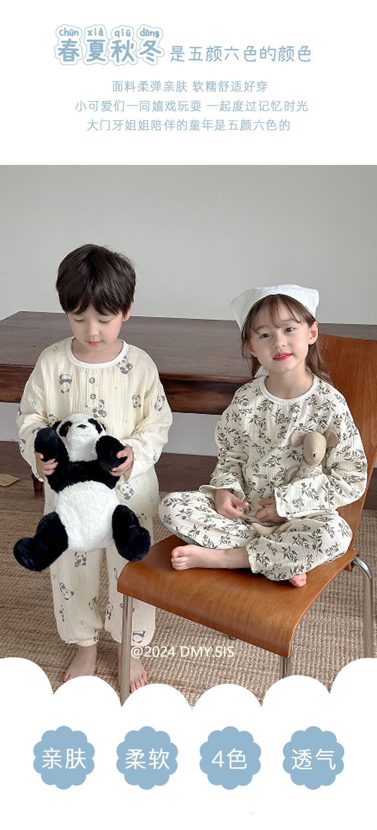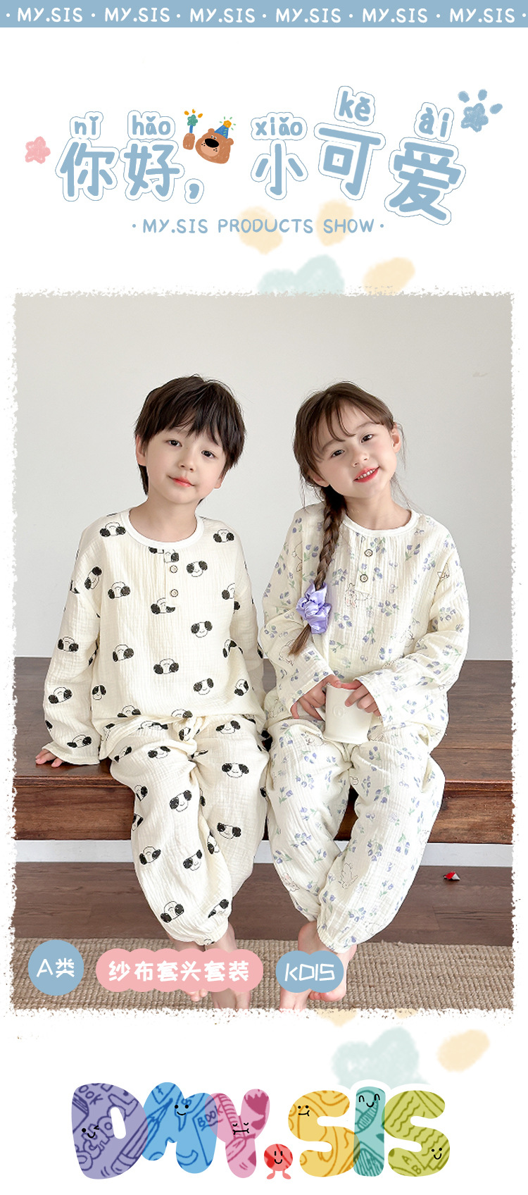 어린이 여름 더블 레이어 코튼 가제 파자마 세트 만화 소년 풀오버 홈 옷 여성용 긴팔 에어컨 옷스토어 가기