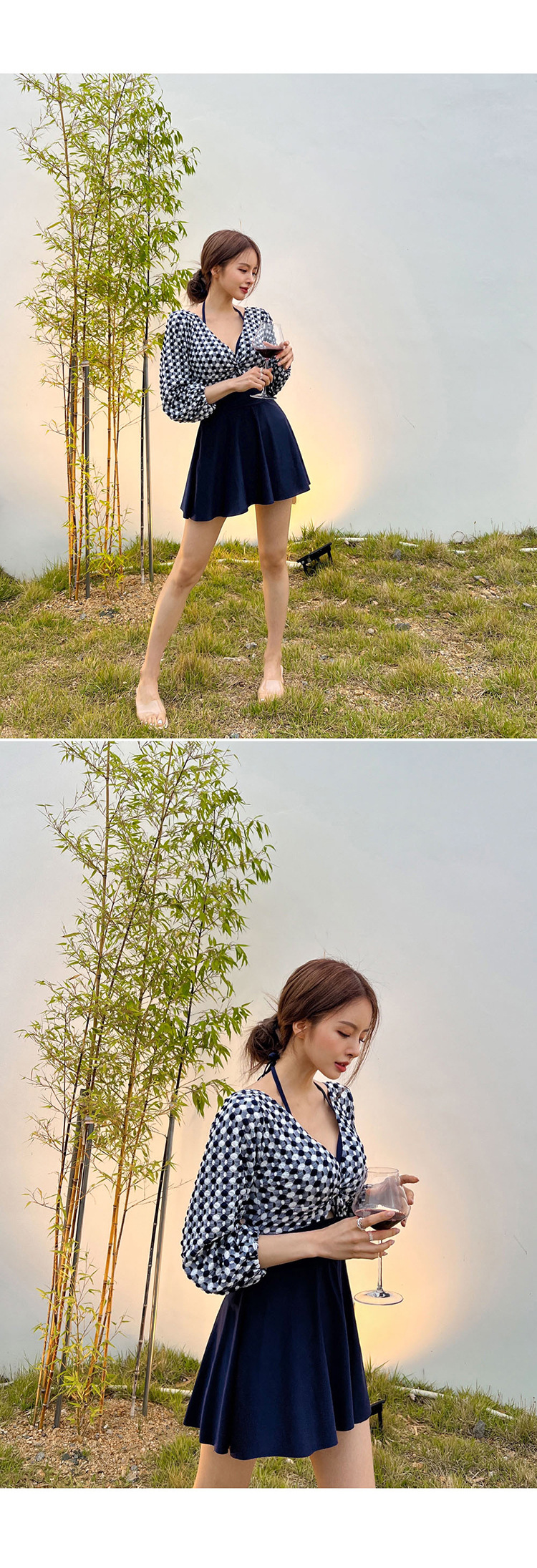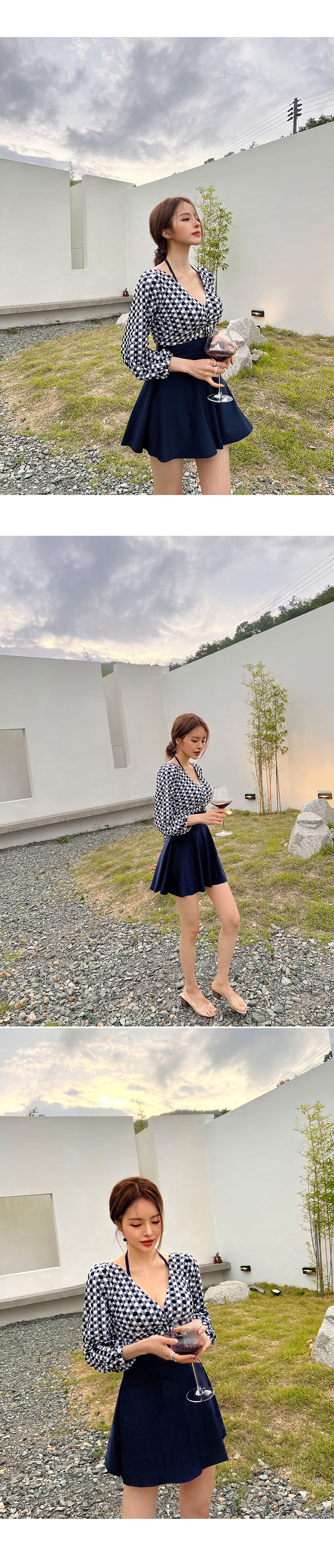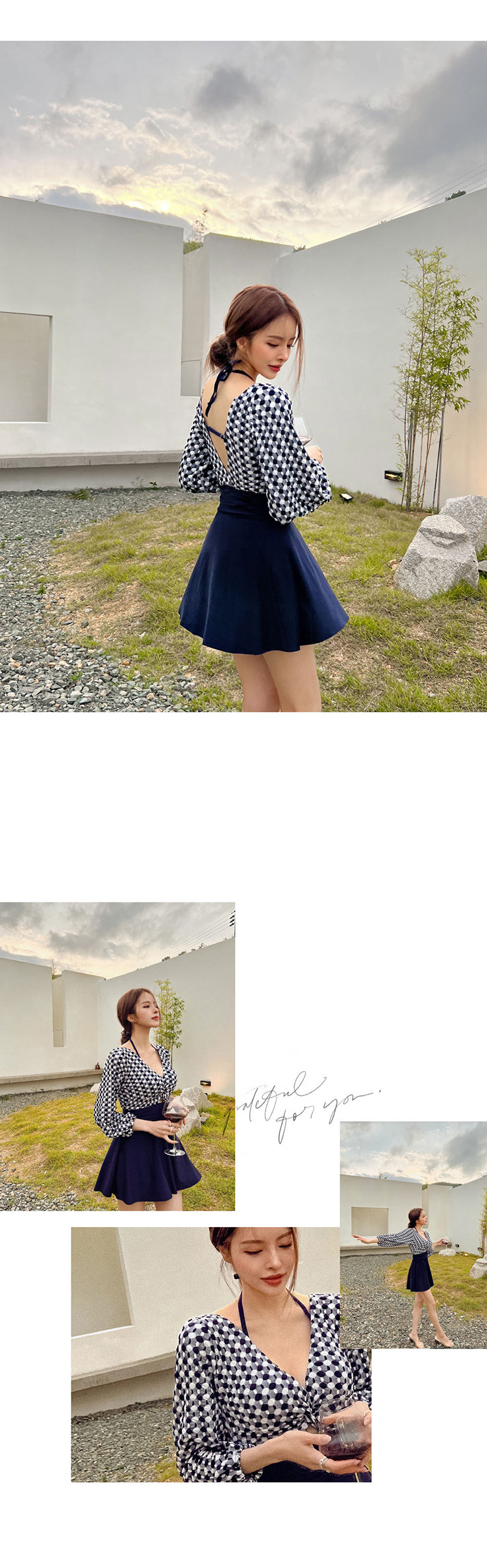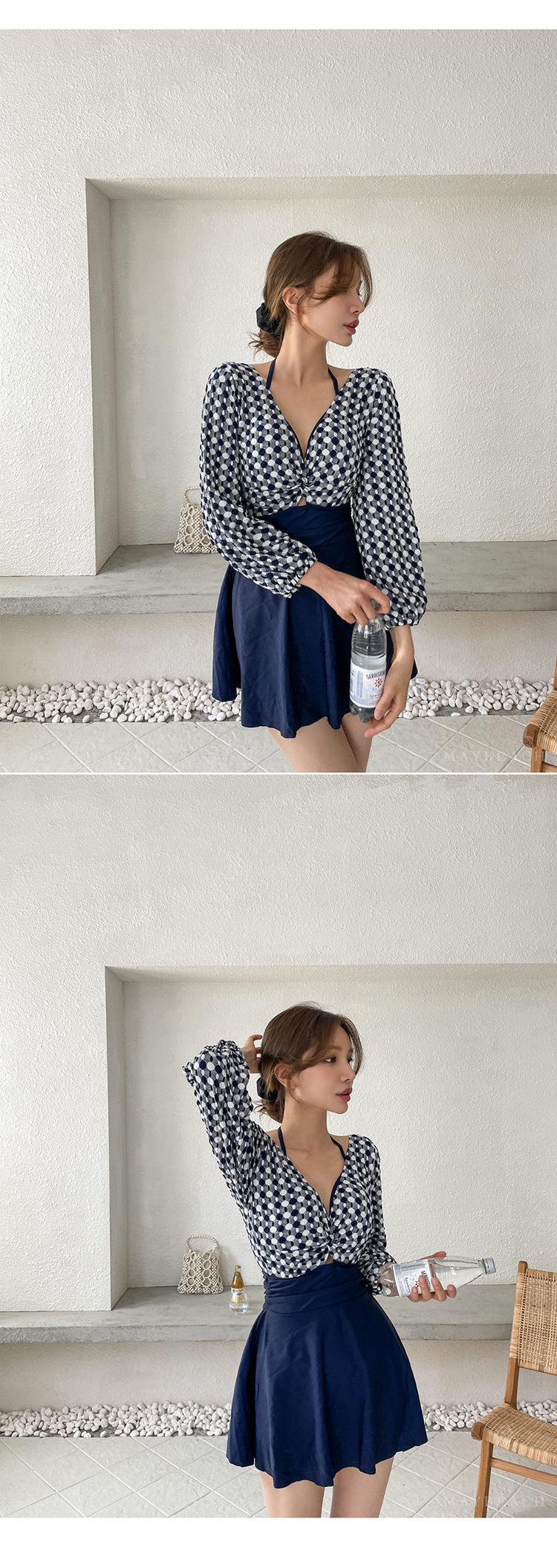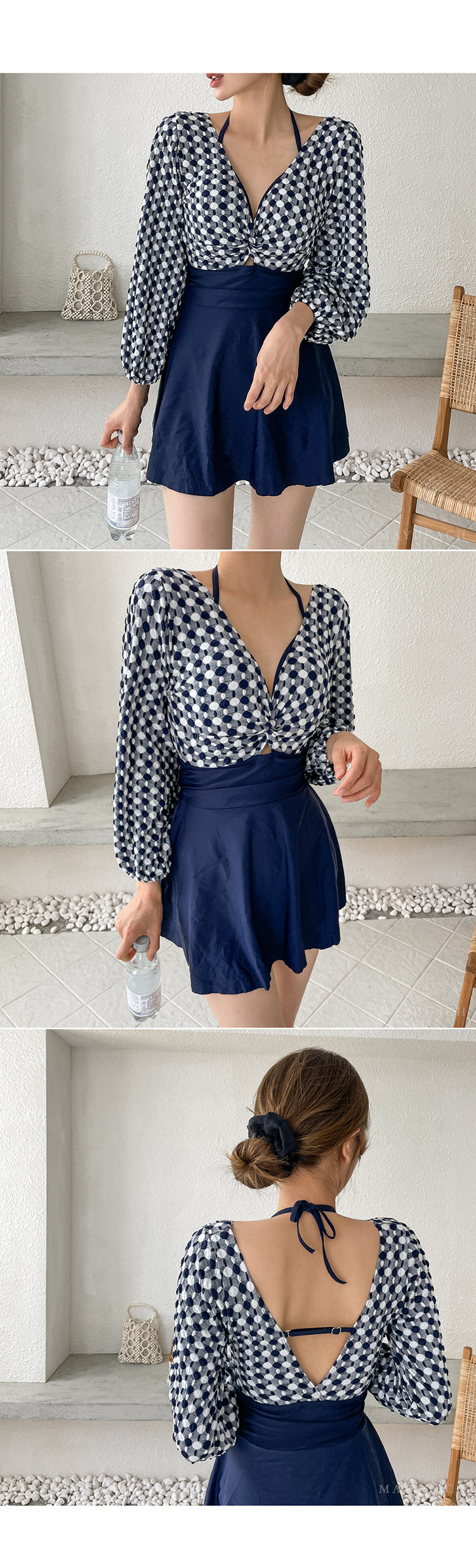 24 새로운 스타일 결합 된 보수적 인 배꼽 슬림 목 로우 컷 수영복 패션 스티칭 격자 핫 봄 휴일 수영복스토어 가기