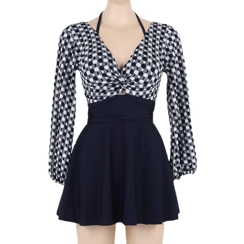 24 새로운 스타일 결합 된 보수적 인 배꼽 슬림 목 로우 컷 수영복 패션 스티칭 격자 핫 봄 휴일 수영복