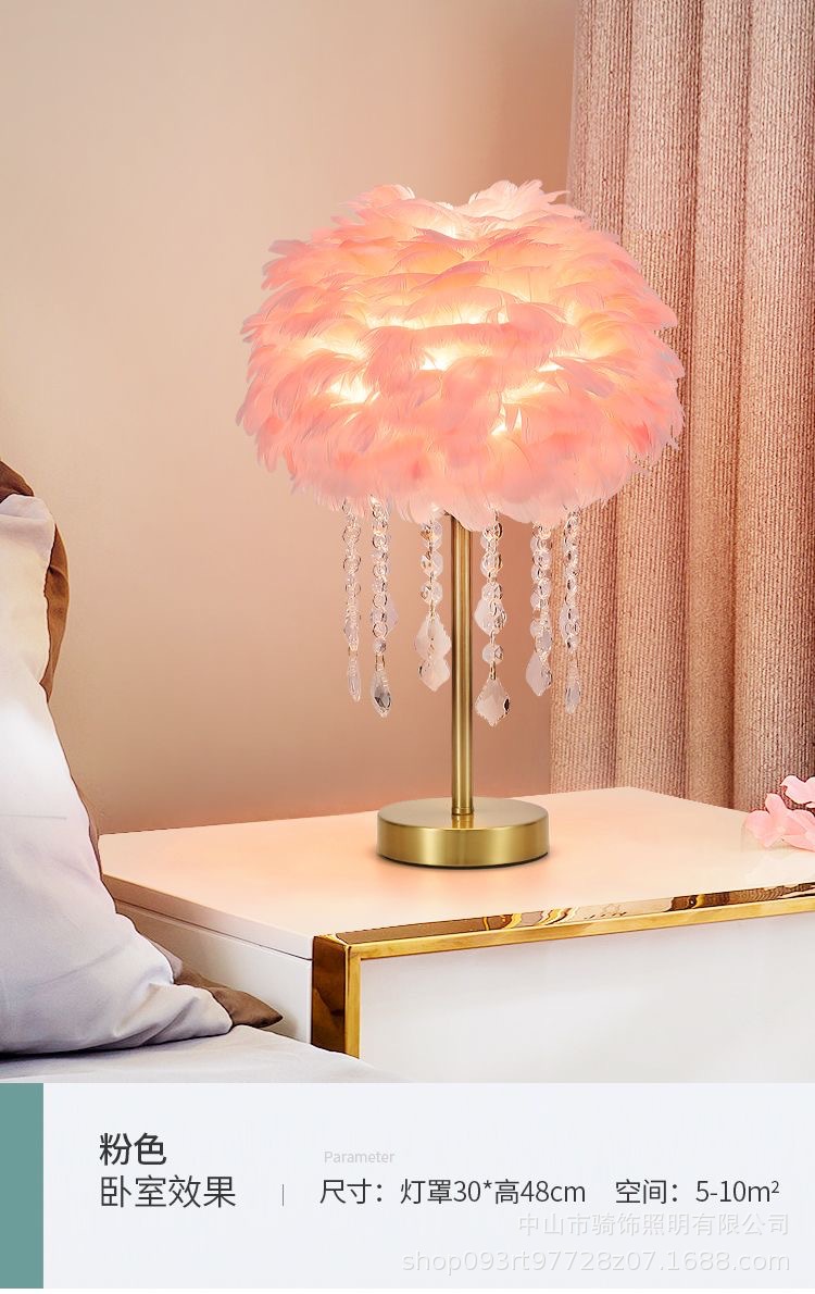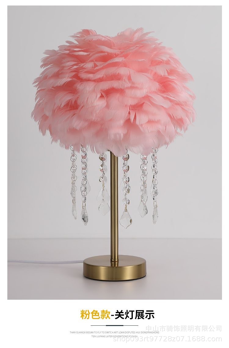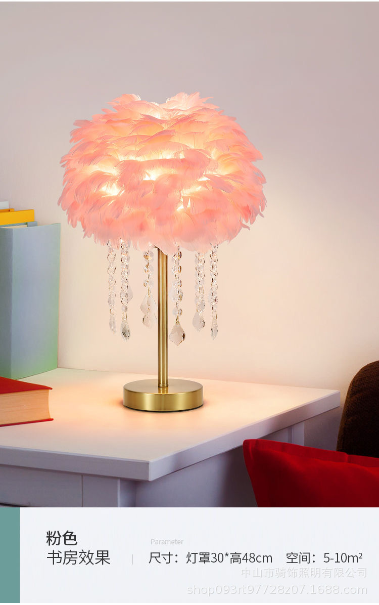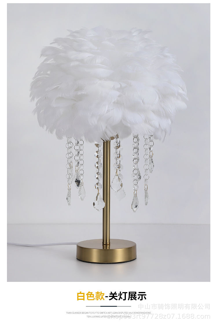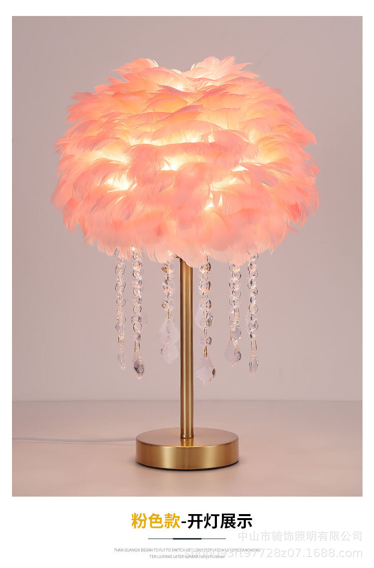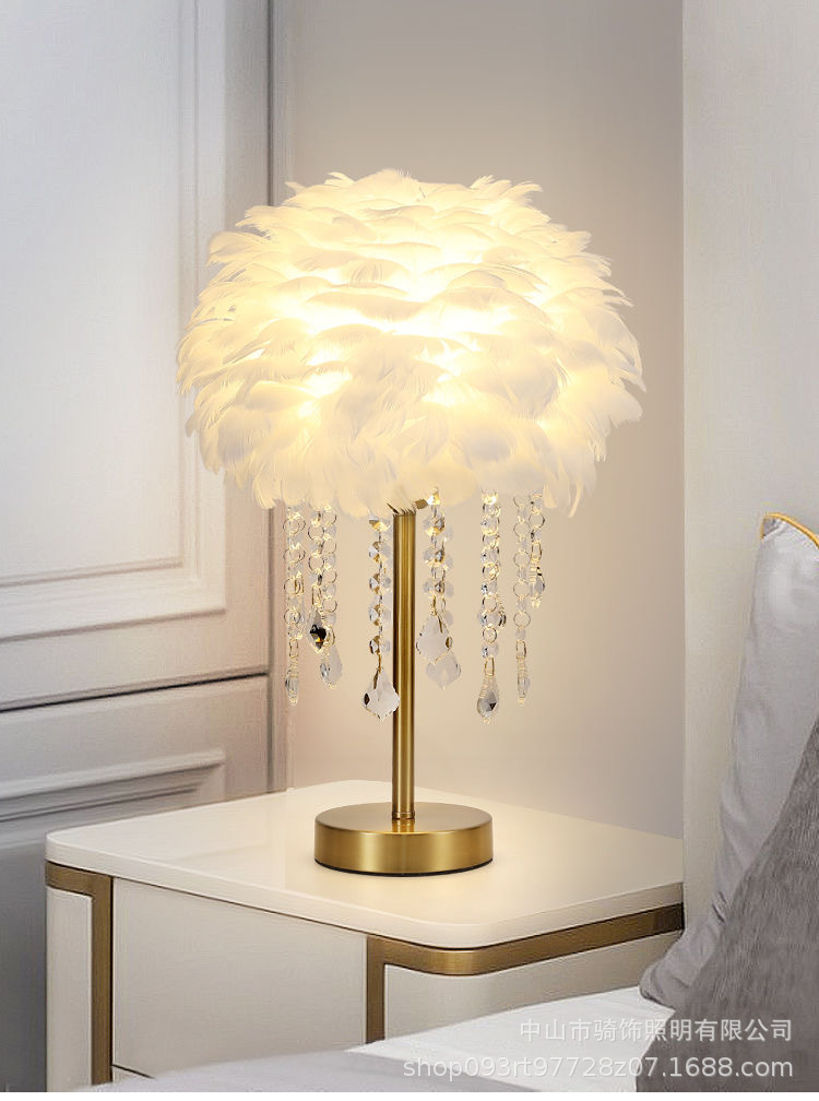 가벼운 럭셔리 아름다운 대기 크리스탈 깃털 테이블 램프 바람으로 여자의 심장 침실 책상 장식 테이블 램프스토어 가기
