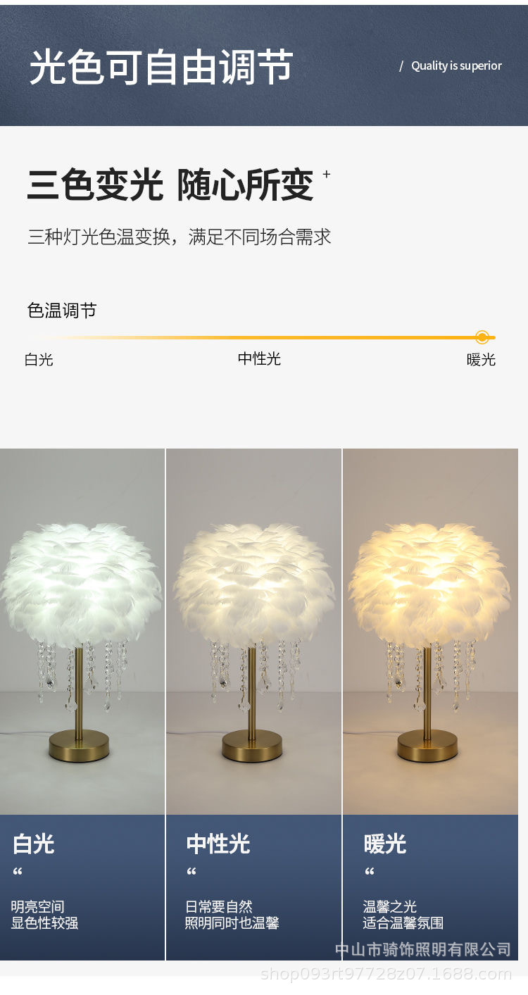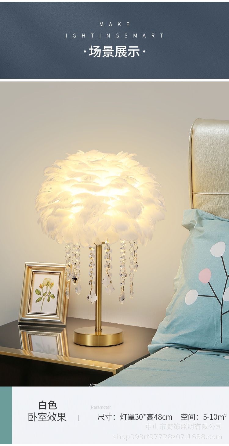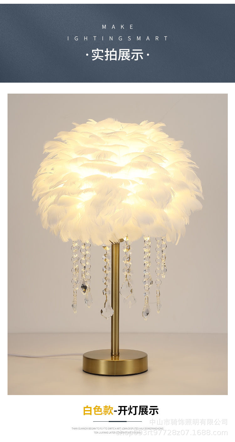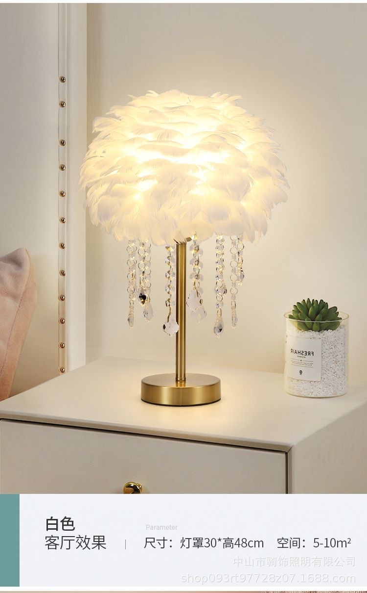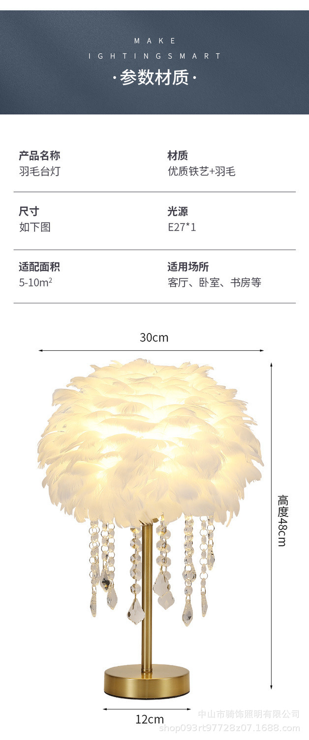 가벼운 럭셔리 아름다운 대기 크리스탈 깃털 테이블 램프 바람으로 여자의 심장 침실 책상 장식 테이블 램프스토어 가기