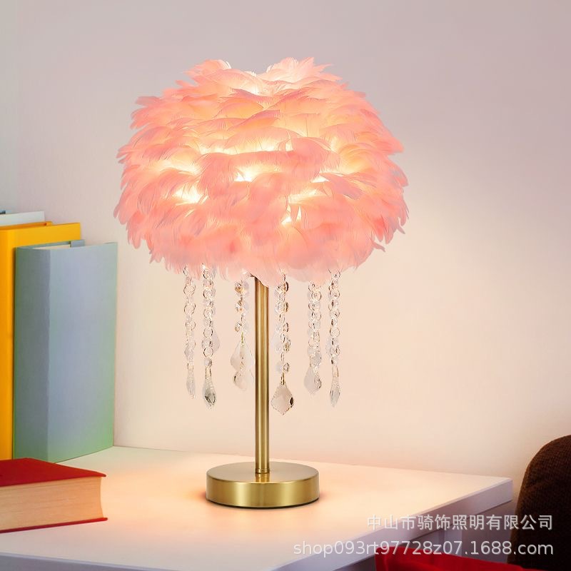 가벼운 럭셔리 아름다운 대기 크리스탈 깃털 테이블 램프 바람으로 여자의 심장 침실 책상 장식 테이블 램프