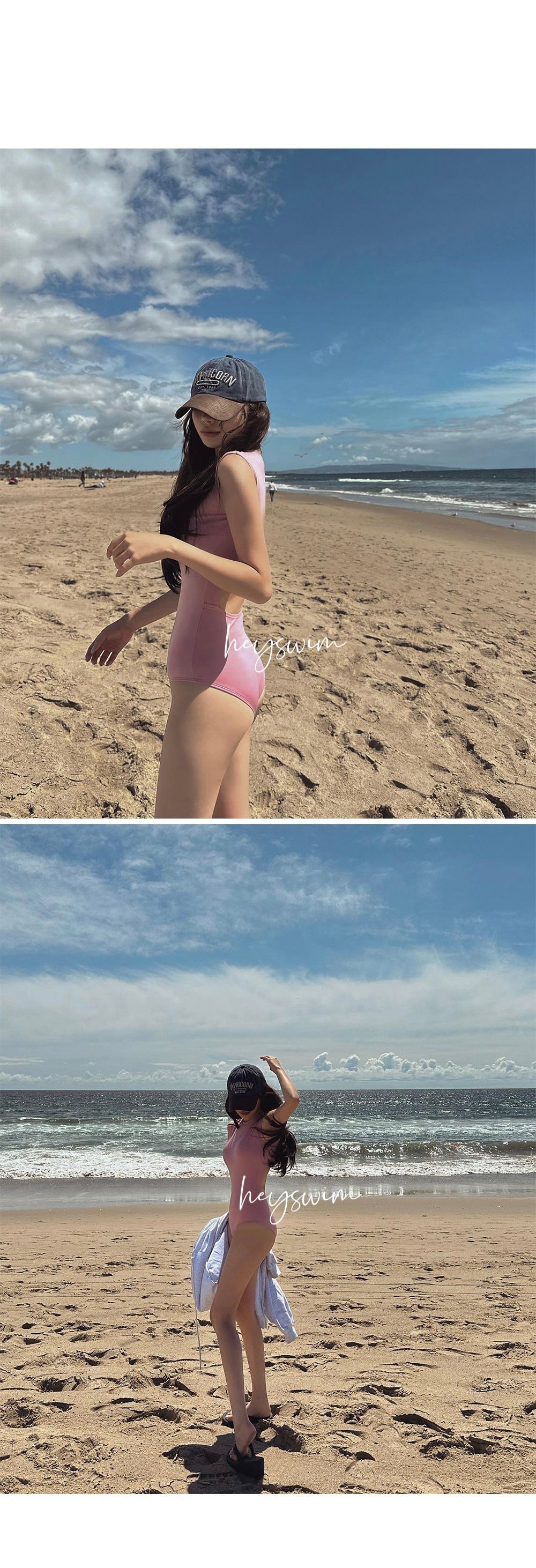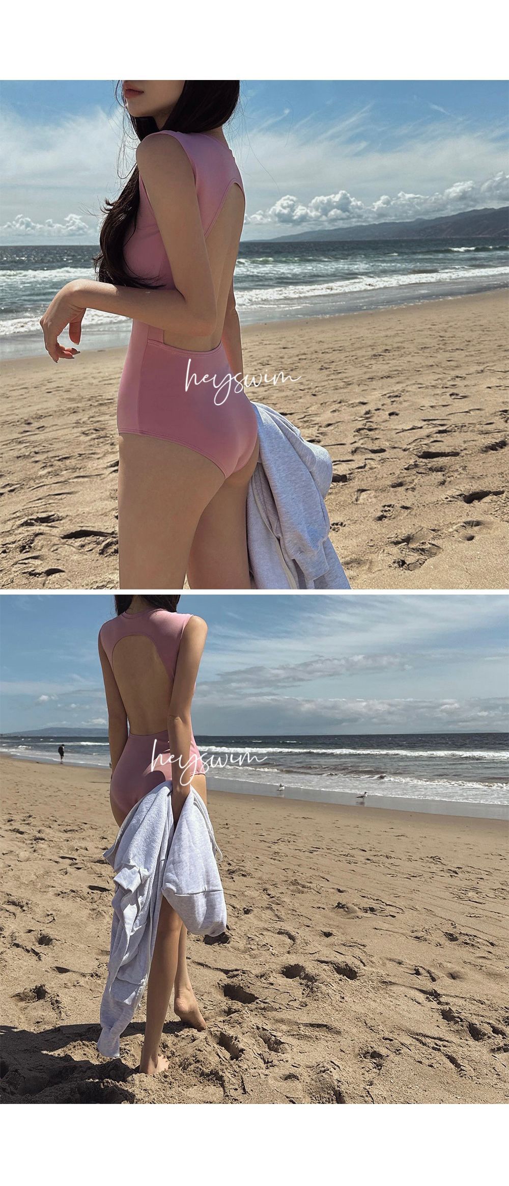 24 새로운 한국식 원피스 수영복 여성용 섹시한 백리스 하이넥 슬리밍 수영복 여성용 세련된 단색 백리스 수영복스토어 가기