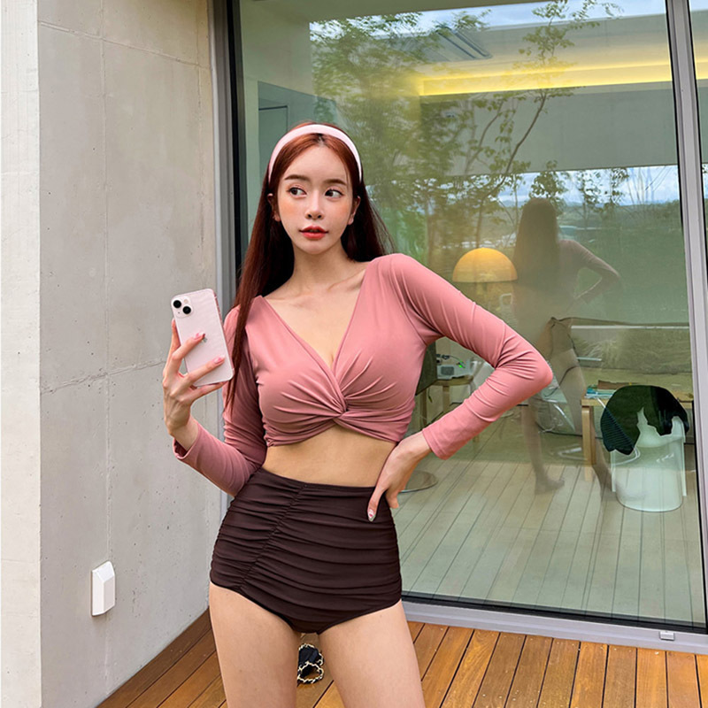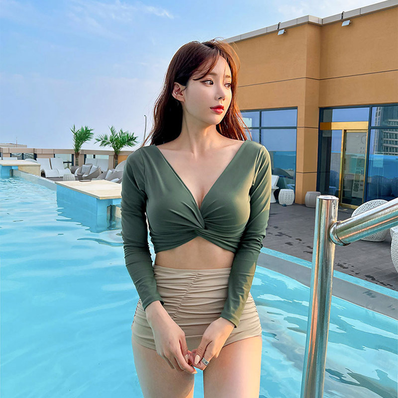 한국 인 간단한 비키니 분할 수영복 긴 소매 안티 섹시 슬리밍 육체 커버 수영복 비키니