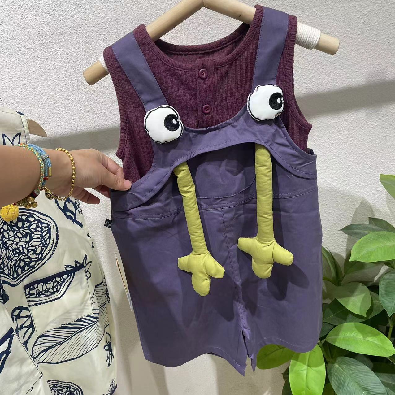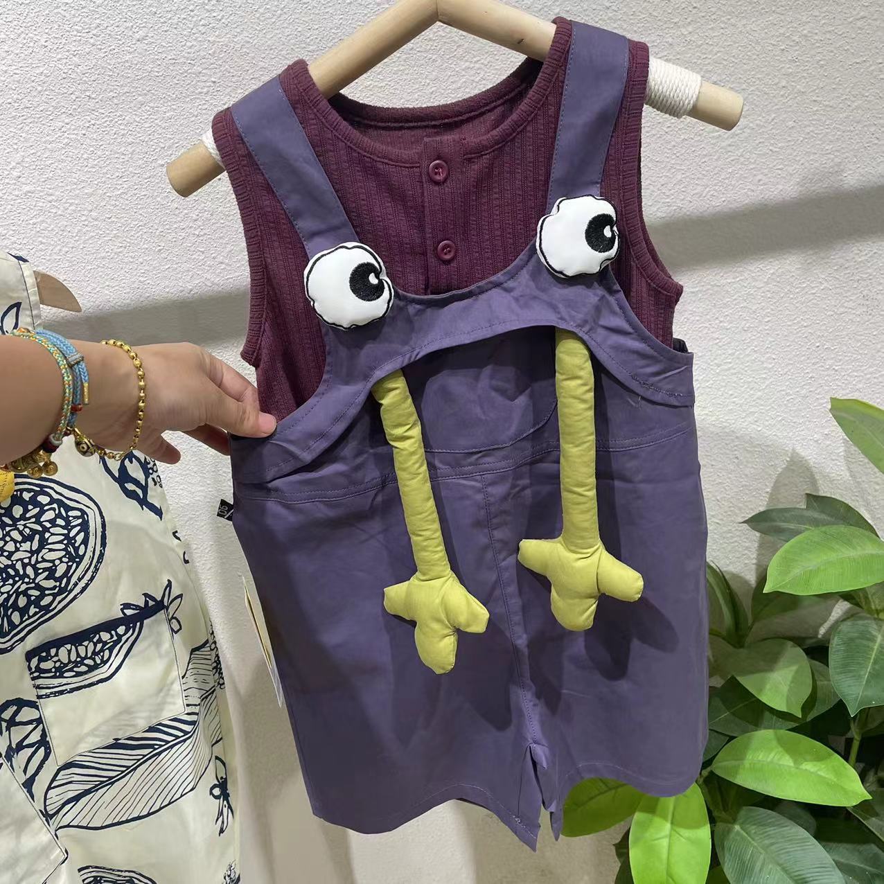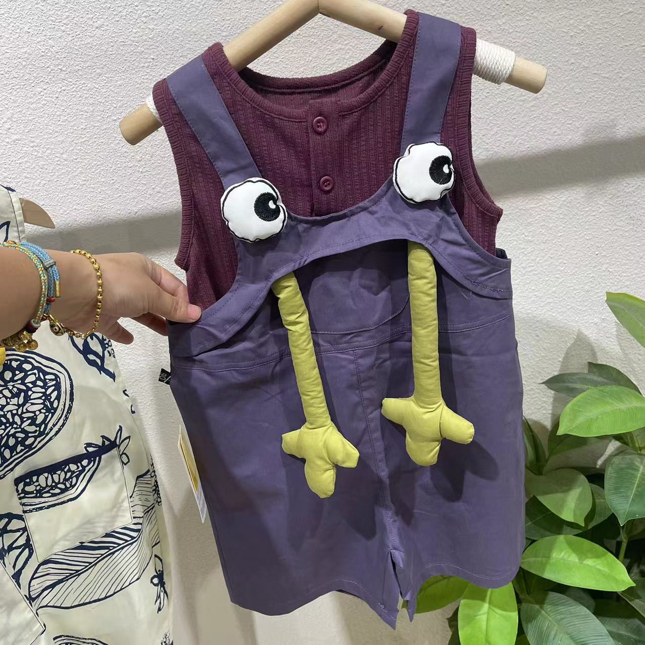 만화 큰 눈 멜빵 2024 새로운 여름 의류 온라인 인기있는 작은 소년 캐주얼 러피언스토어 가기